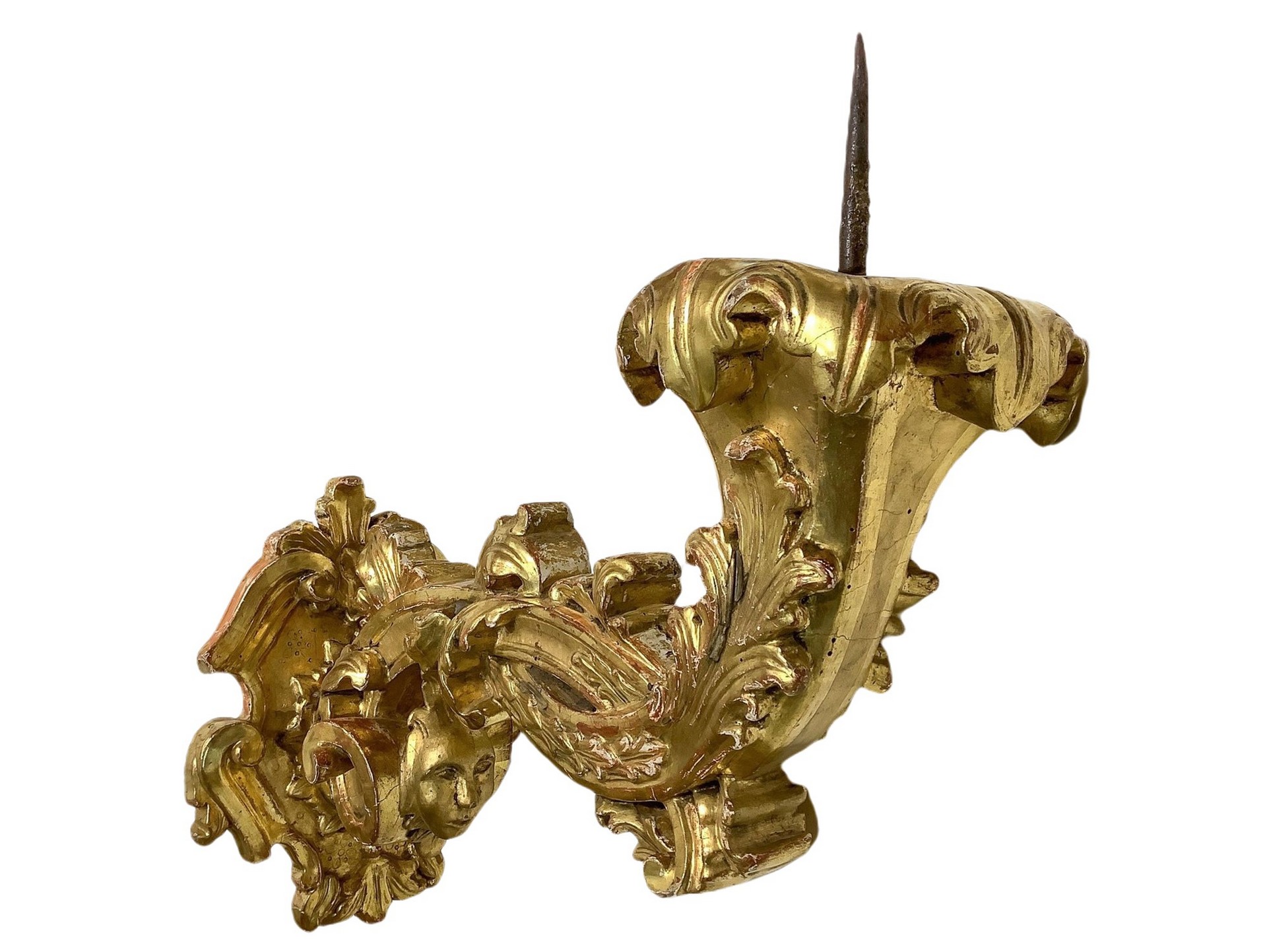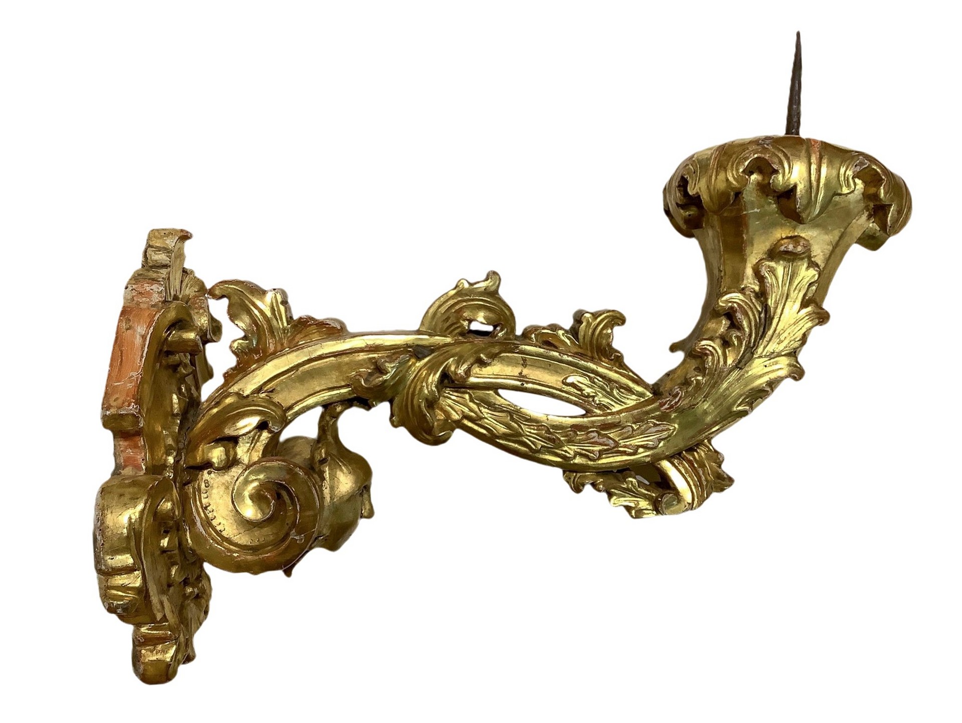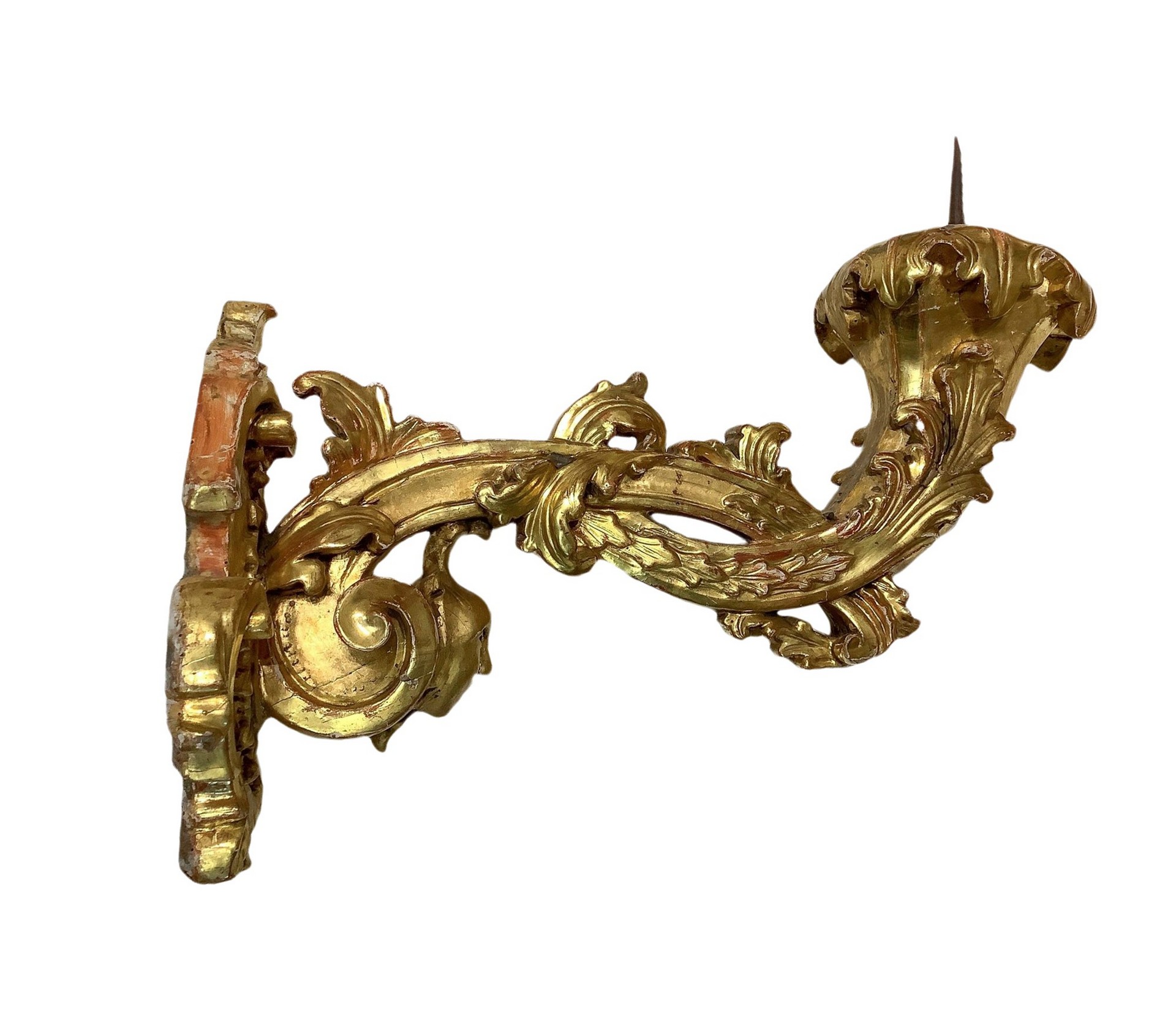 Lot 4 | Coppia di bracci in legno dorato b 30x35cm, lunghezza 65 cm