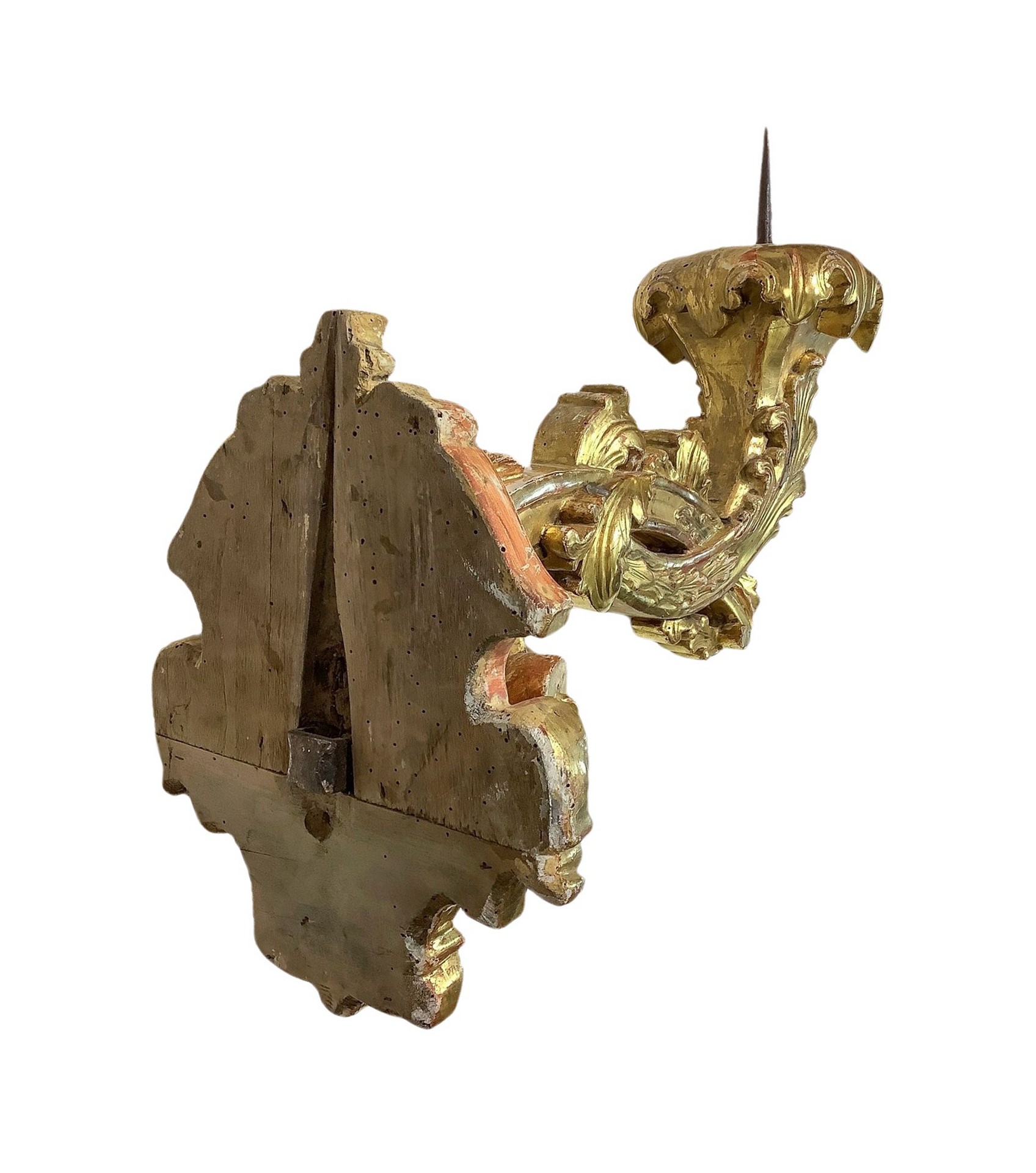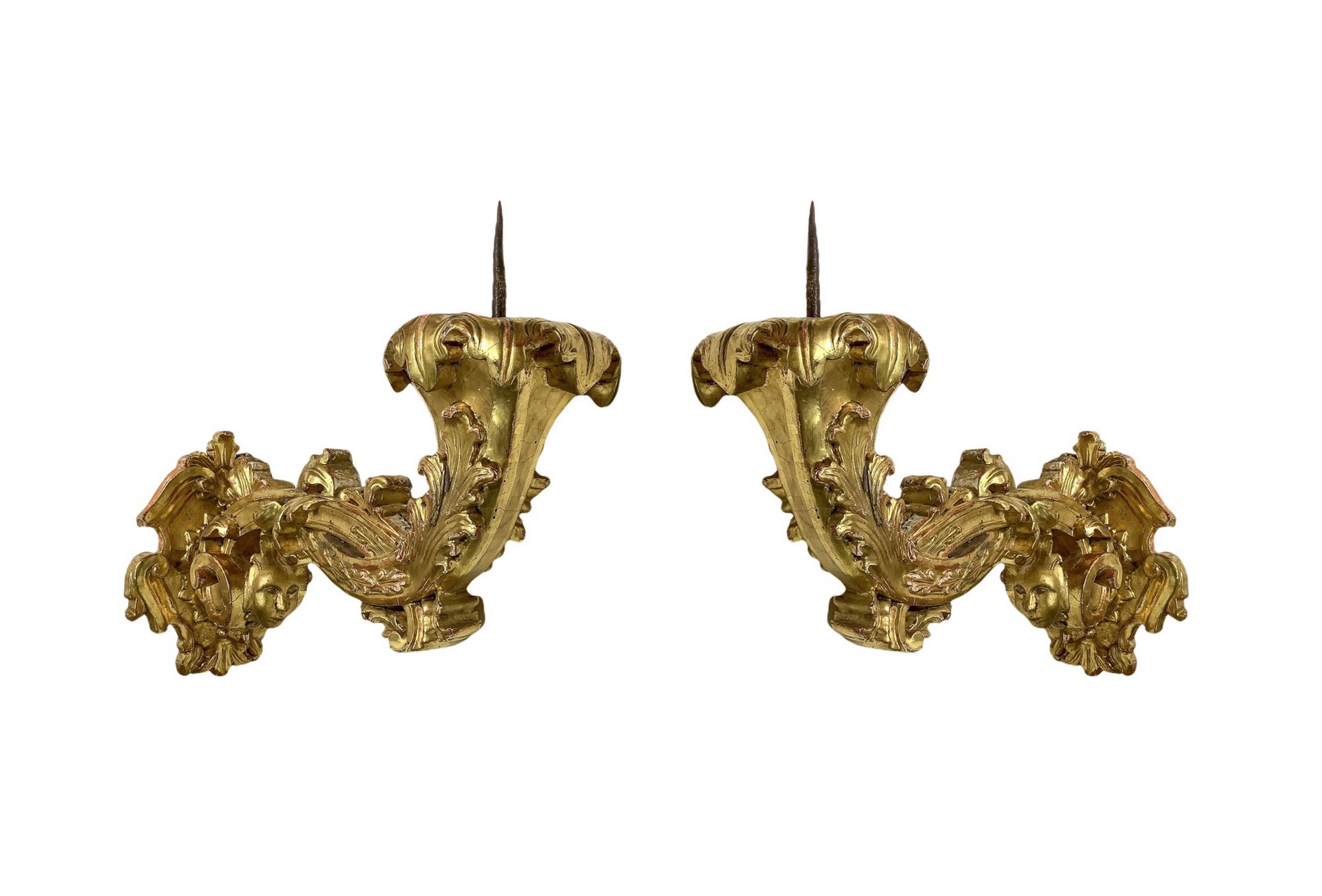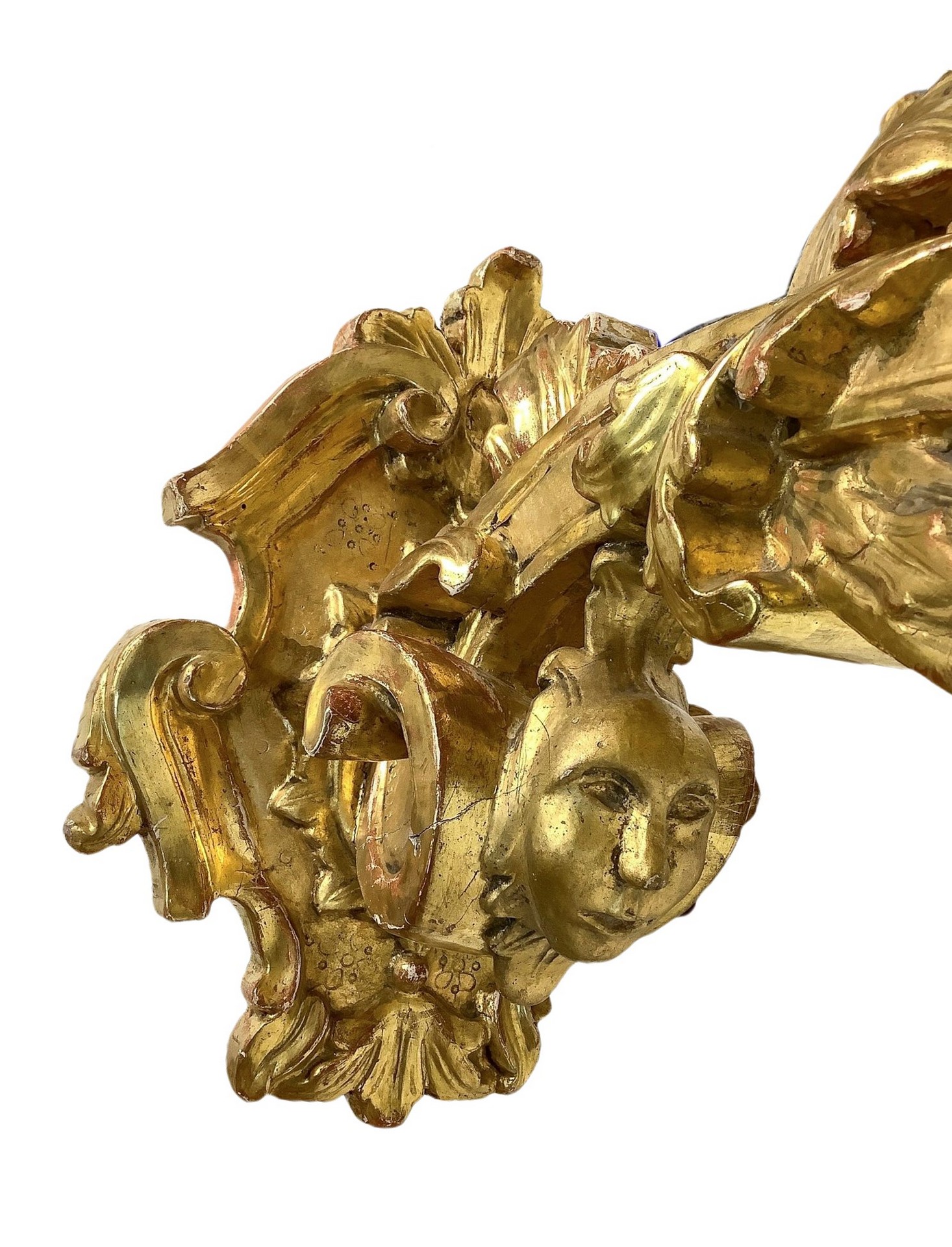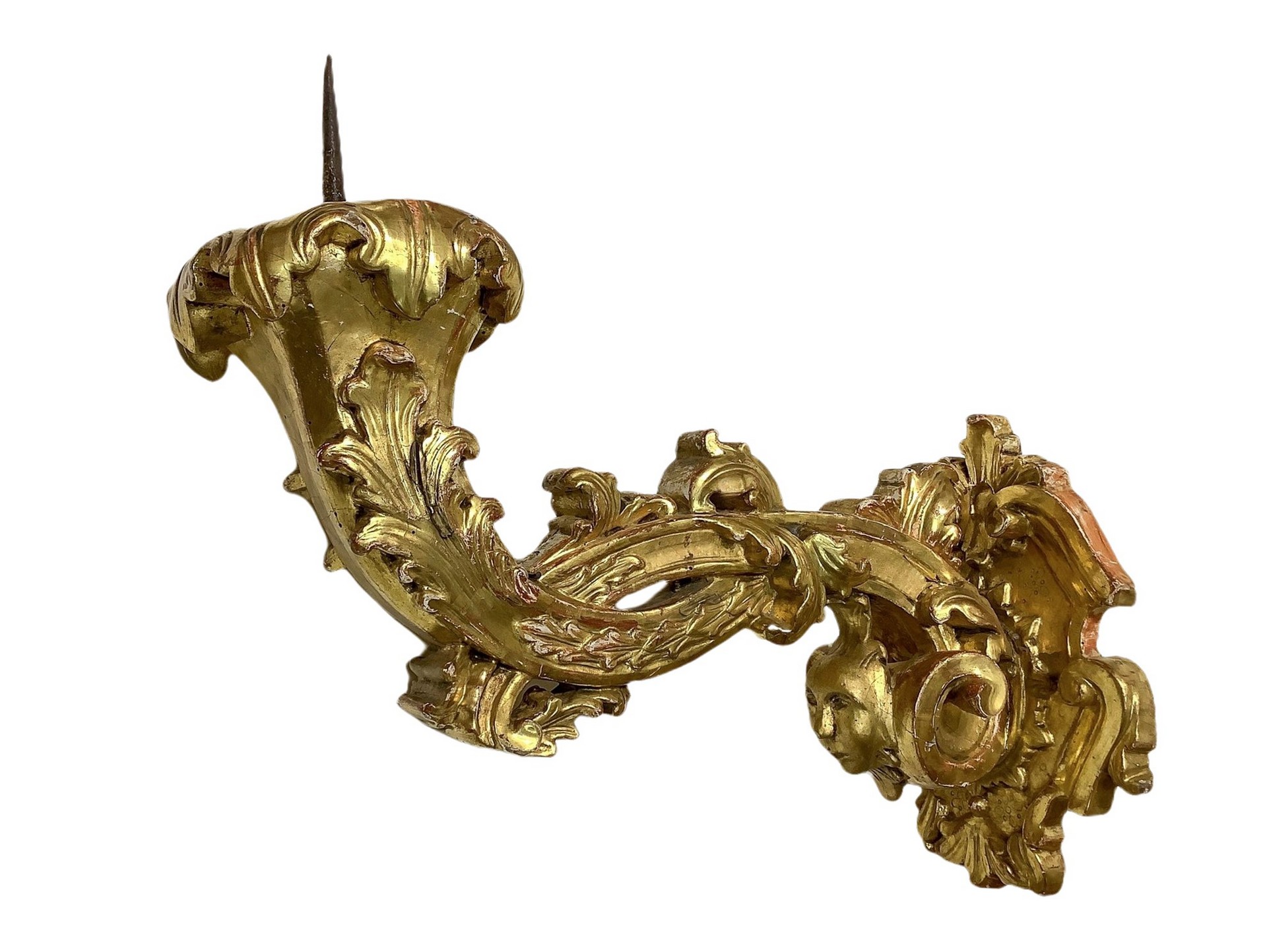 Lot 4 | Coppia di bracci in legno dorato b 30x35cm, lunghezza 65 cm