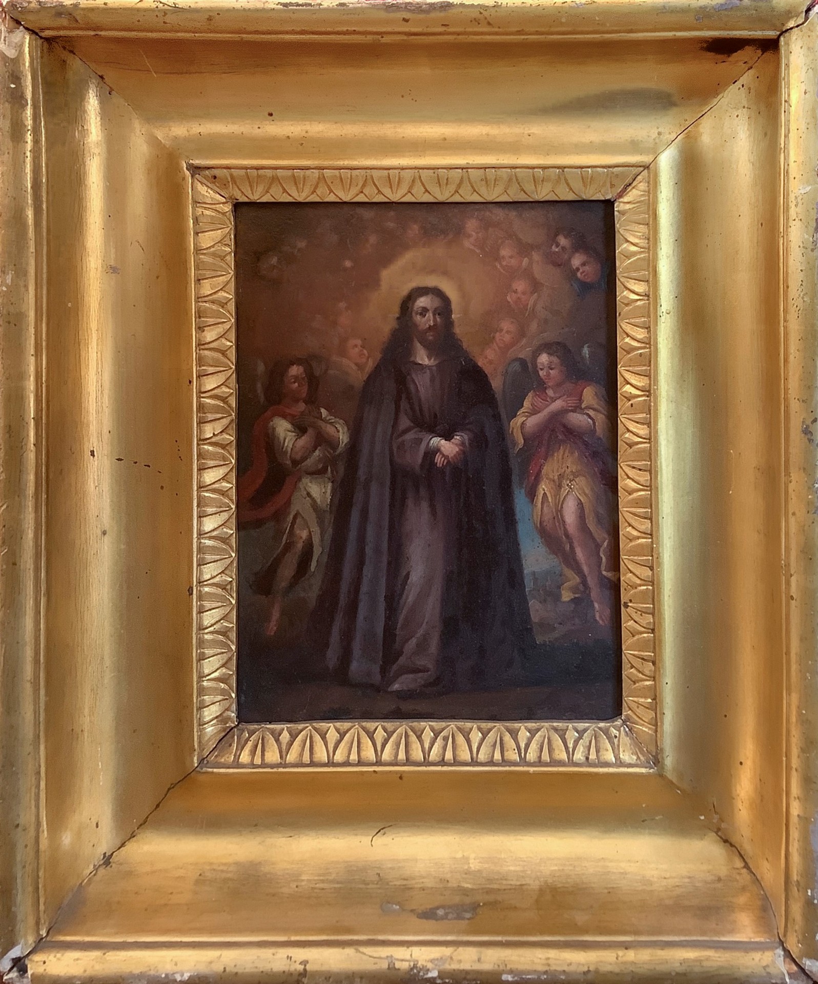 Cristo con angeli e serafini 20x15 cm, in cornice 33x28 cm Dipinto a olio su rame a carattere devozionale