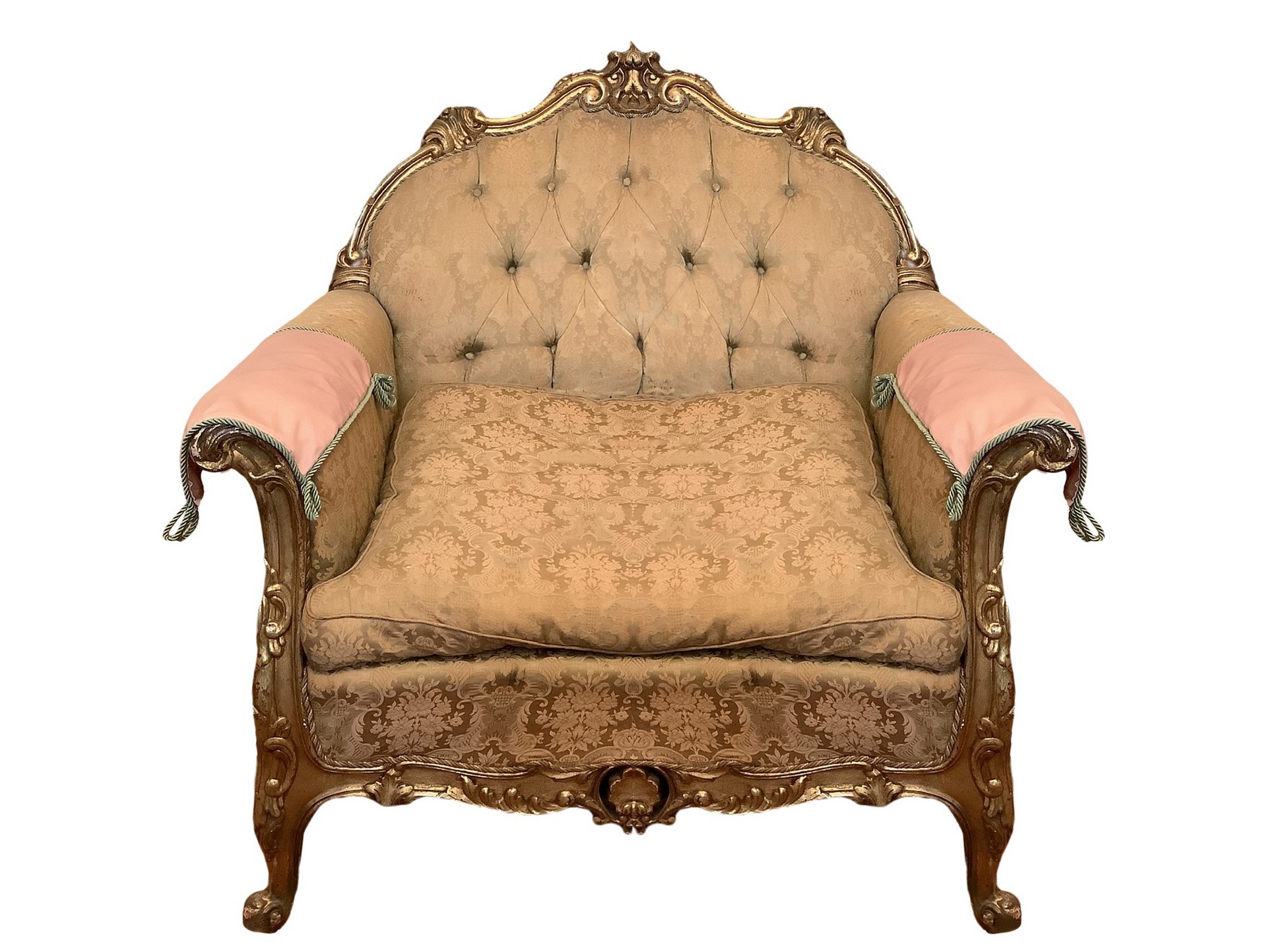 Salotto in legno dorato divano 100 cm x 2 m x 50 cm, poltr