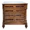 Cassettone 4 cassetti in legno di noce 115x110x55 cm Marmo al piano incassato, colonne laterali, piedi a cipolla schiacciati.