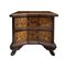 Comodino a due cassetti in legno di noce H 55 c, l 58 cm, p 35 cm Intarsi sul fronte in palissandro e acero. Dentellatura al piano. Provenienza Lombardia.In stile XVIII secolo, restauri e sostituzioni.