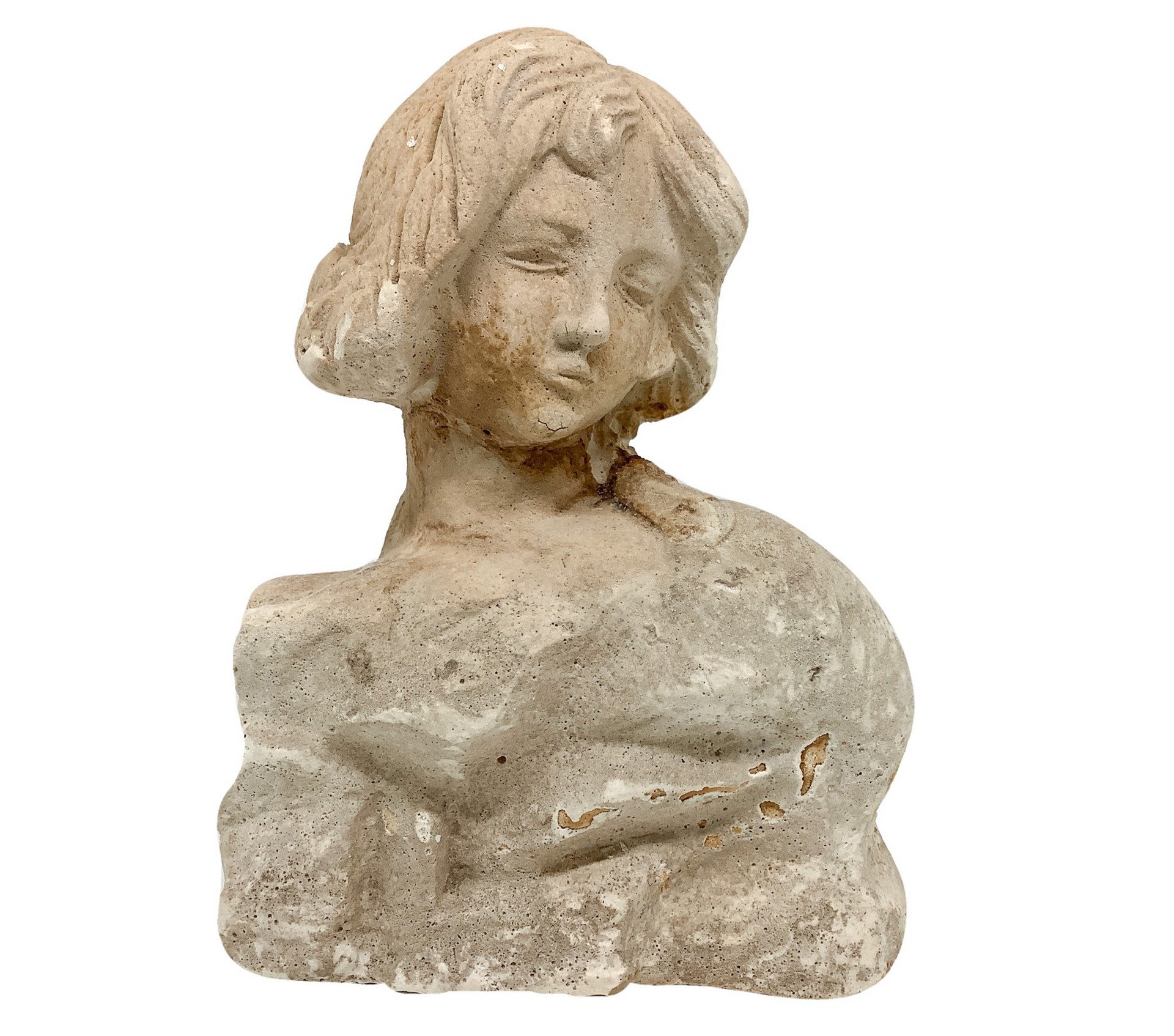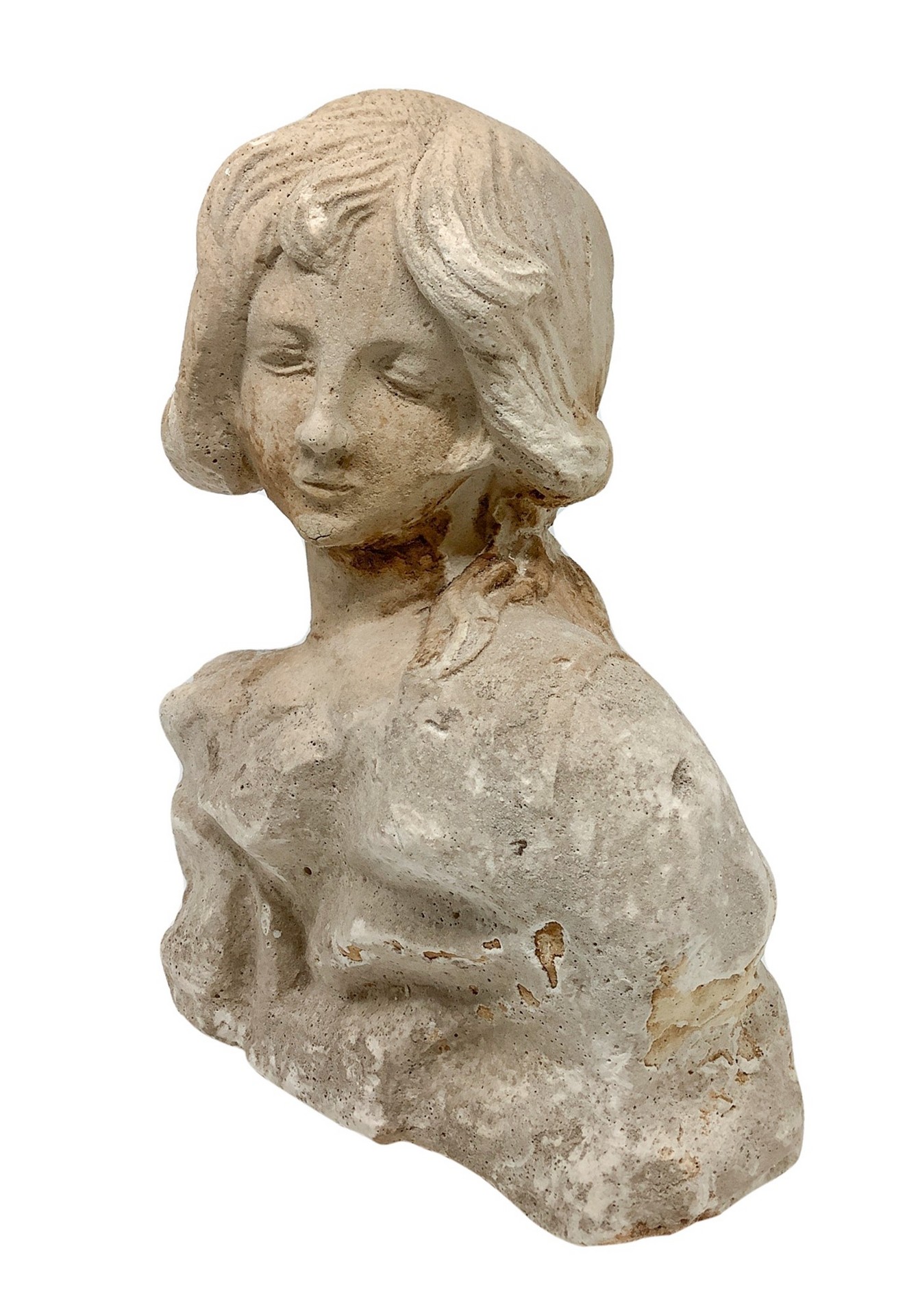 Busto di giovane donna , 1920s h 22 cm, b 17 cm Scultura in gesso patinato Periodo Liberty.
