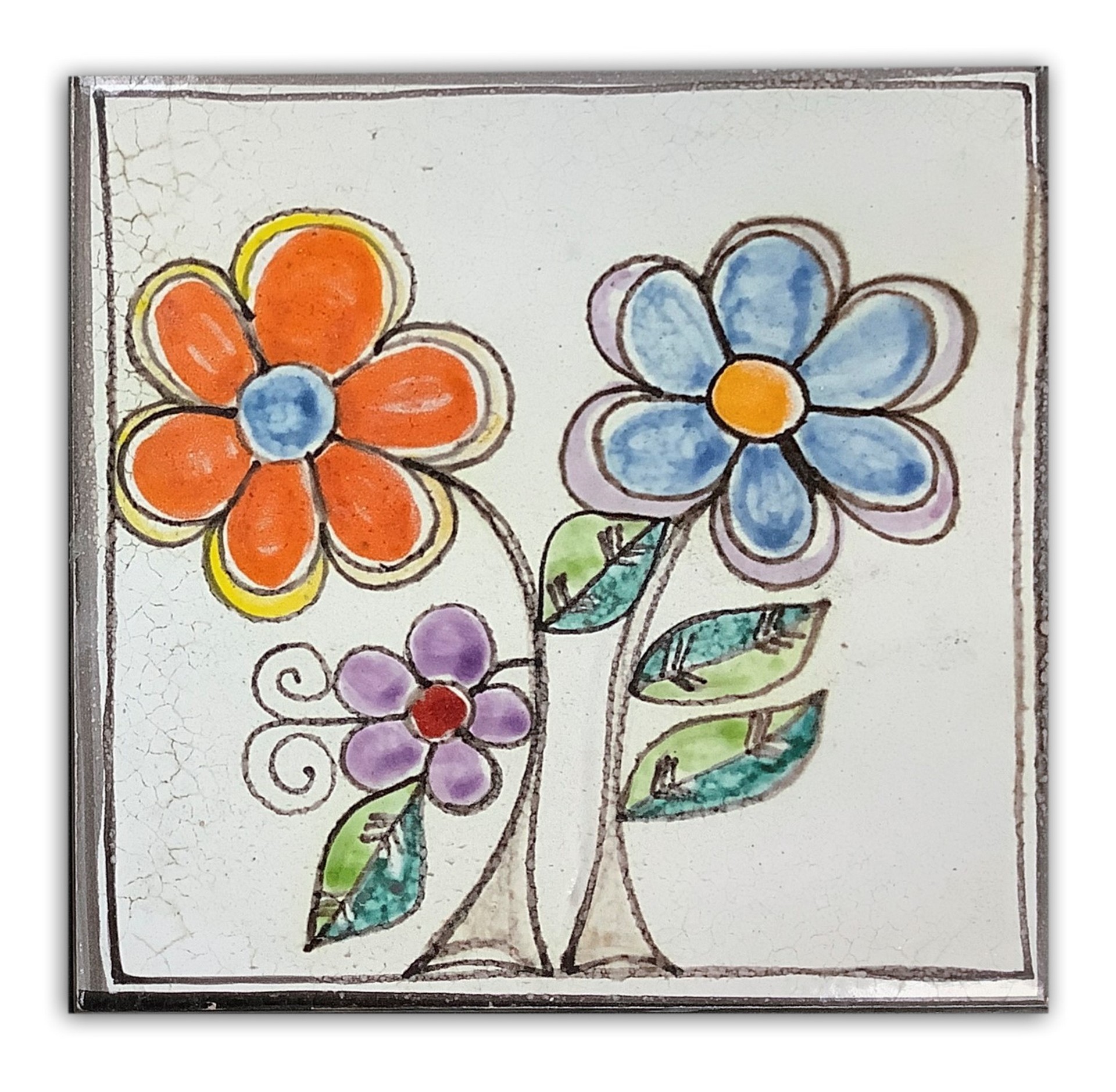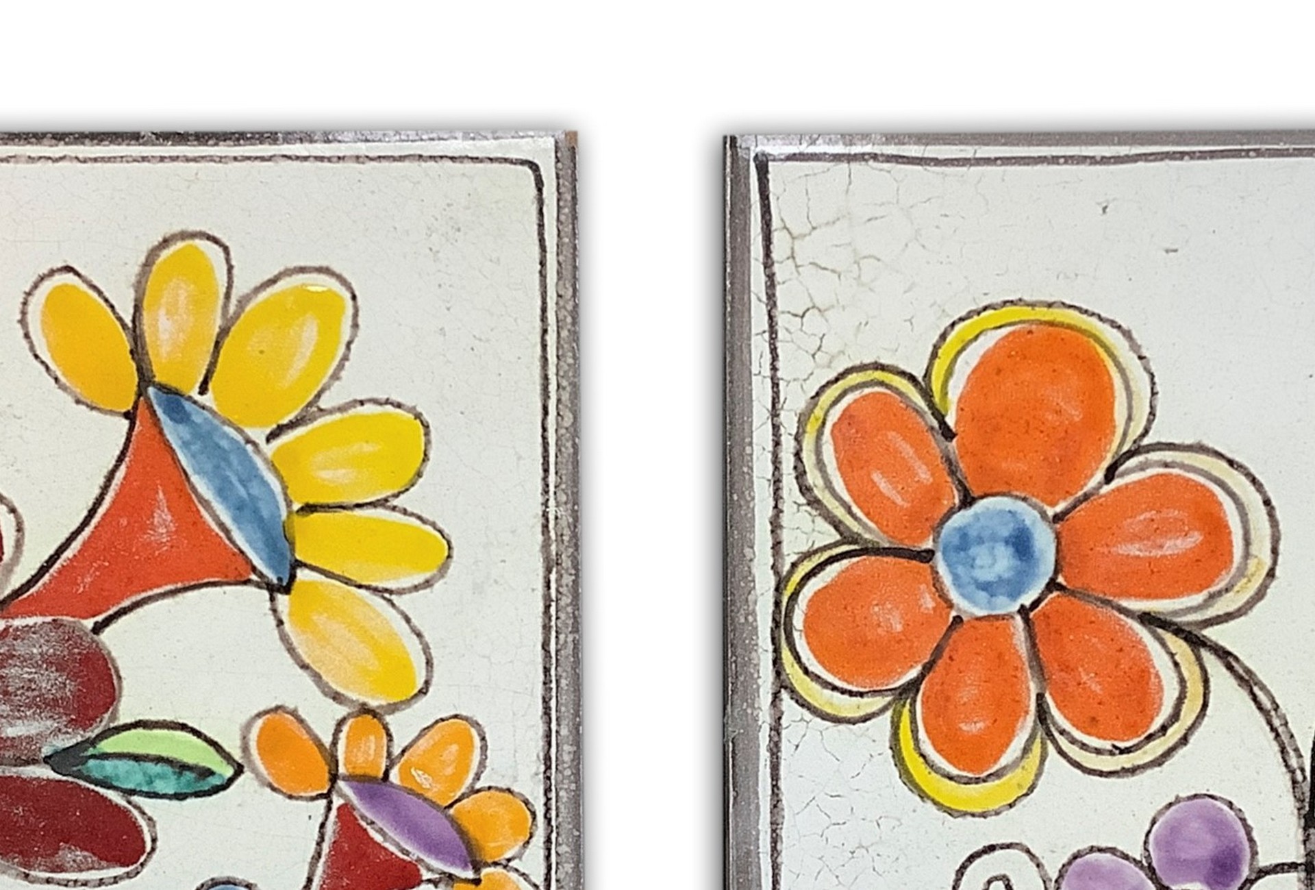 De Simone - Coppia di piastrelle in maiolica raffiguranti fiori variopinti 20x20 cm