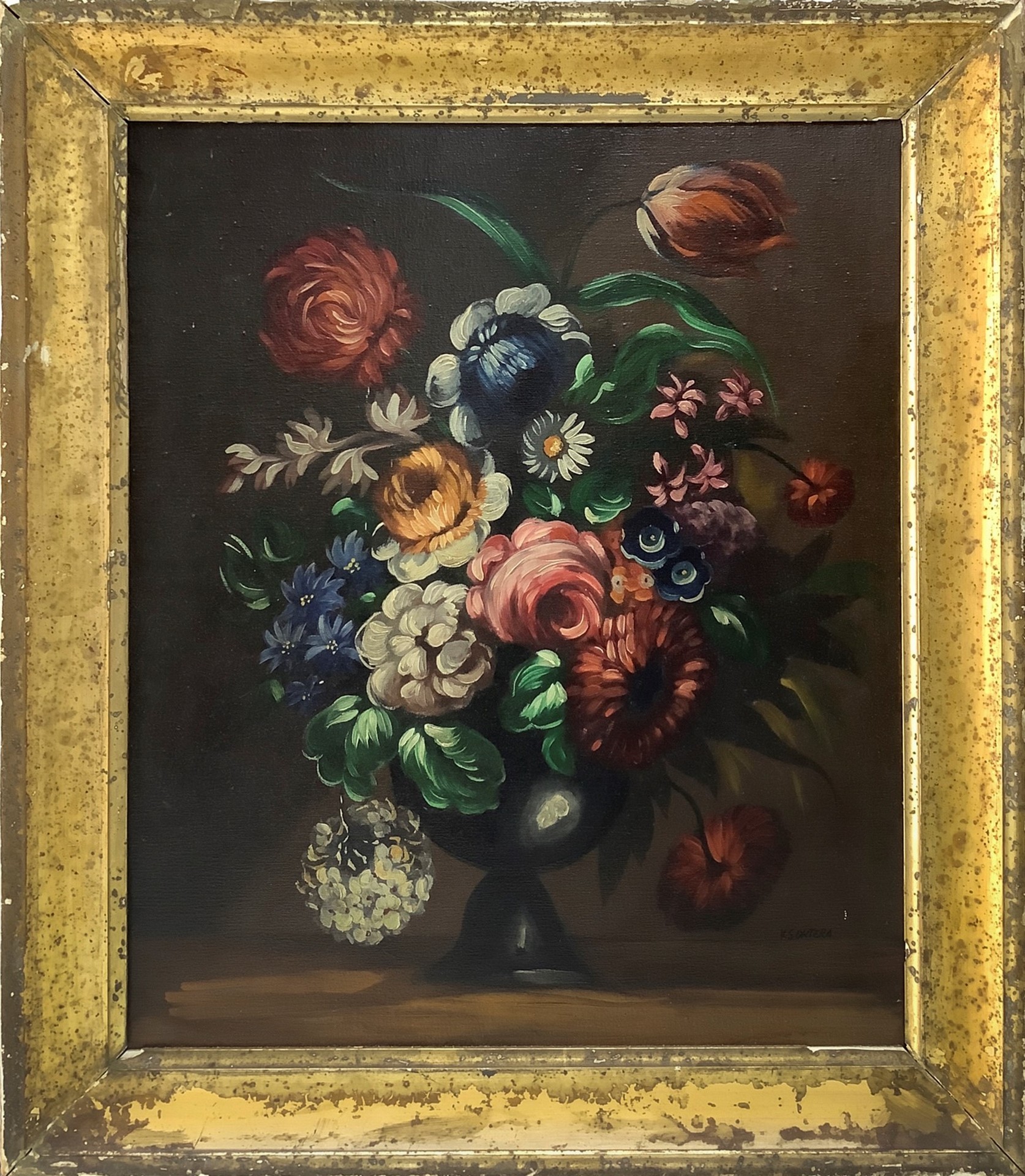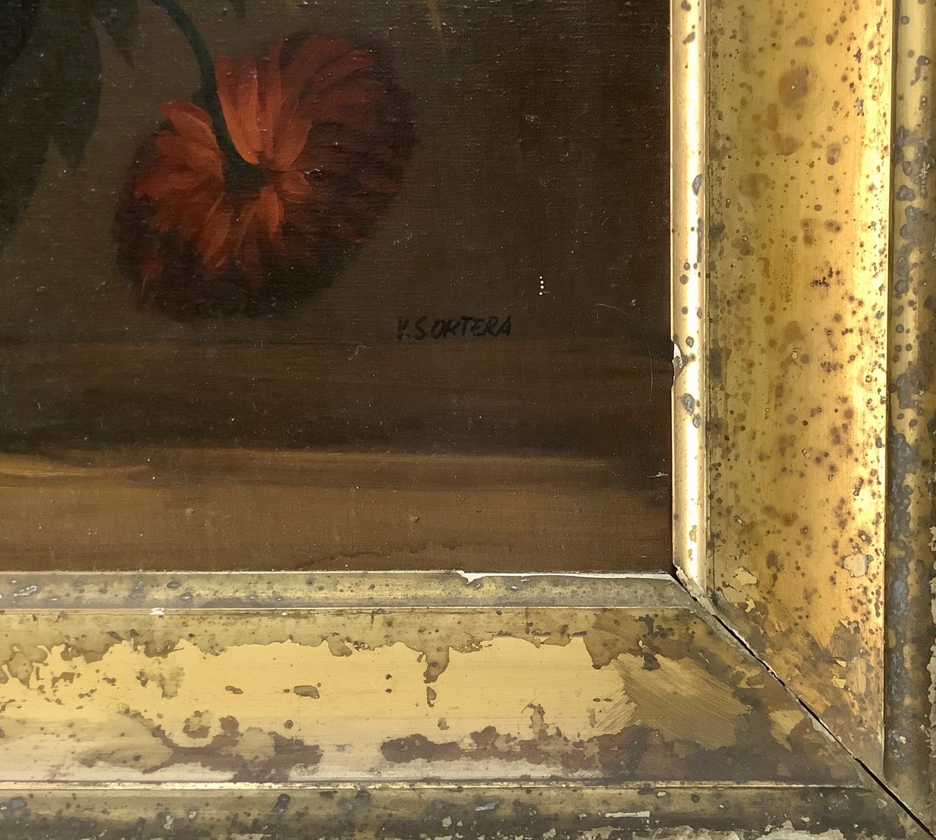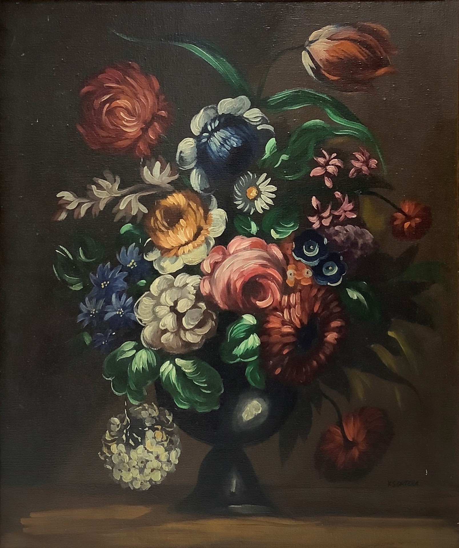 Natura morta h 50 x 40 cm, in cornice h 60 x 50 cm Dipinto a olio su tela Firmato U. Sotera.