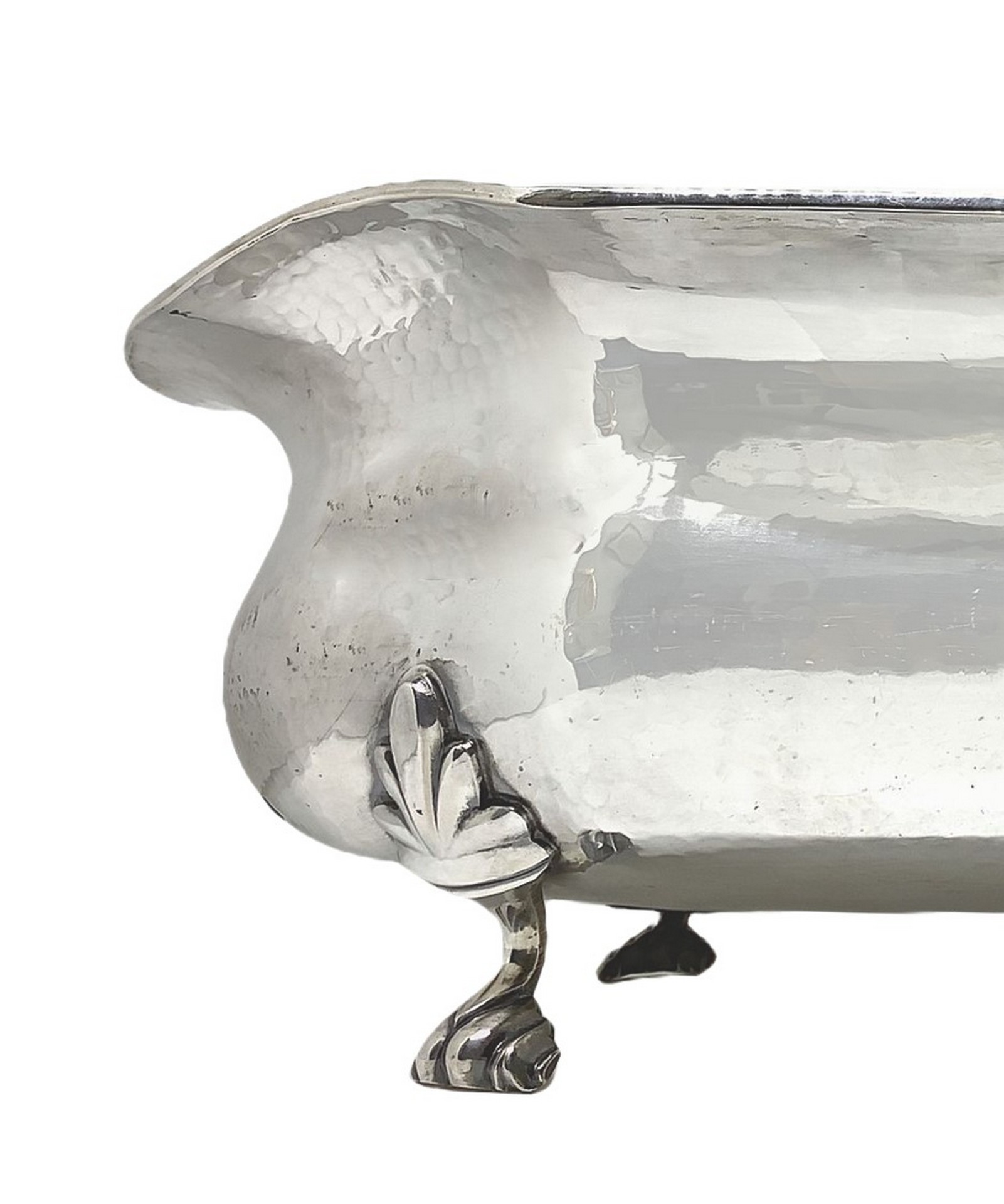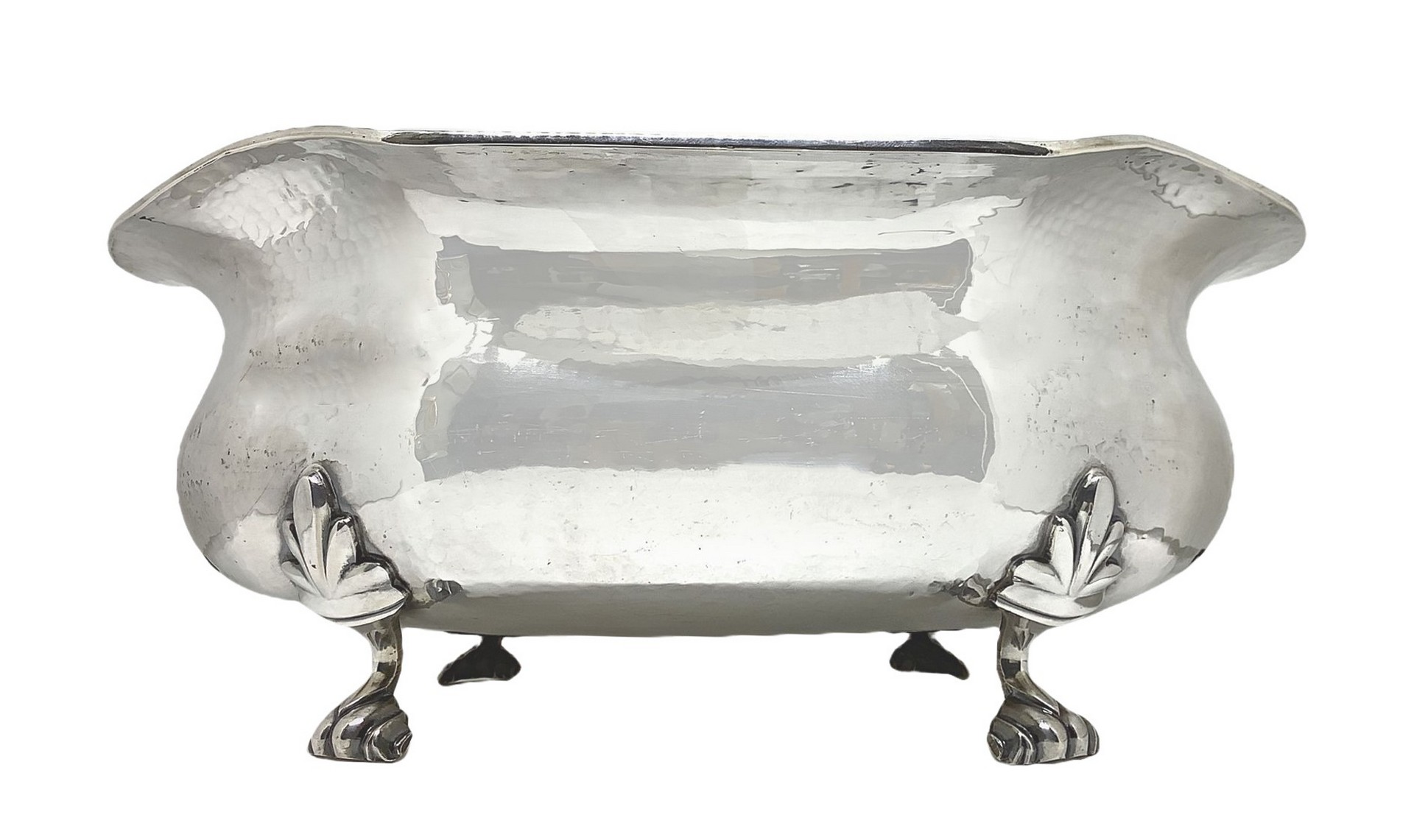 Ciotola in argento con piedini gr. 952, h 13 cm, 30x26 cm