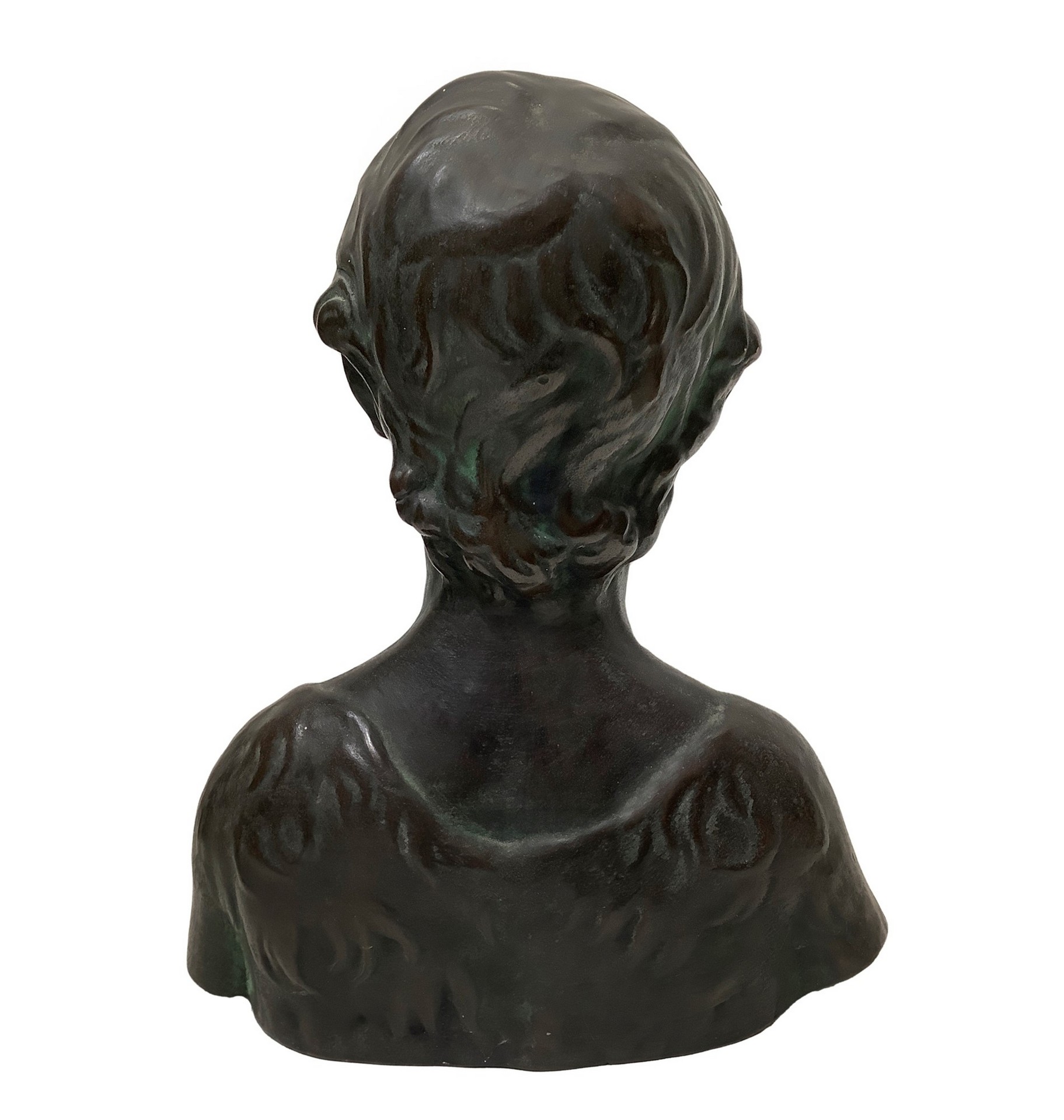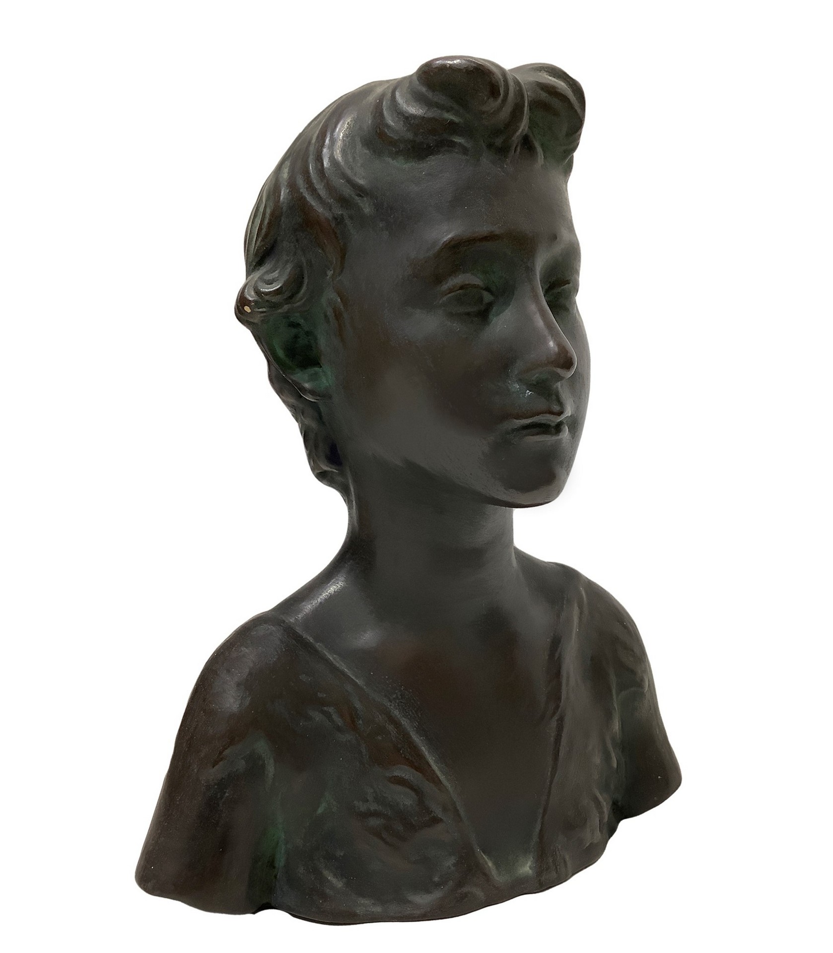 Mezzobusto di ragazza in terracotta patinato in bronzo verde