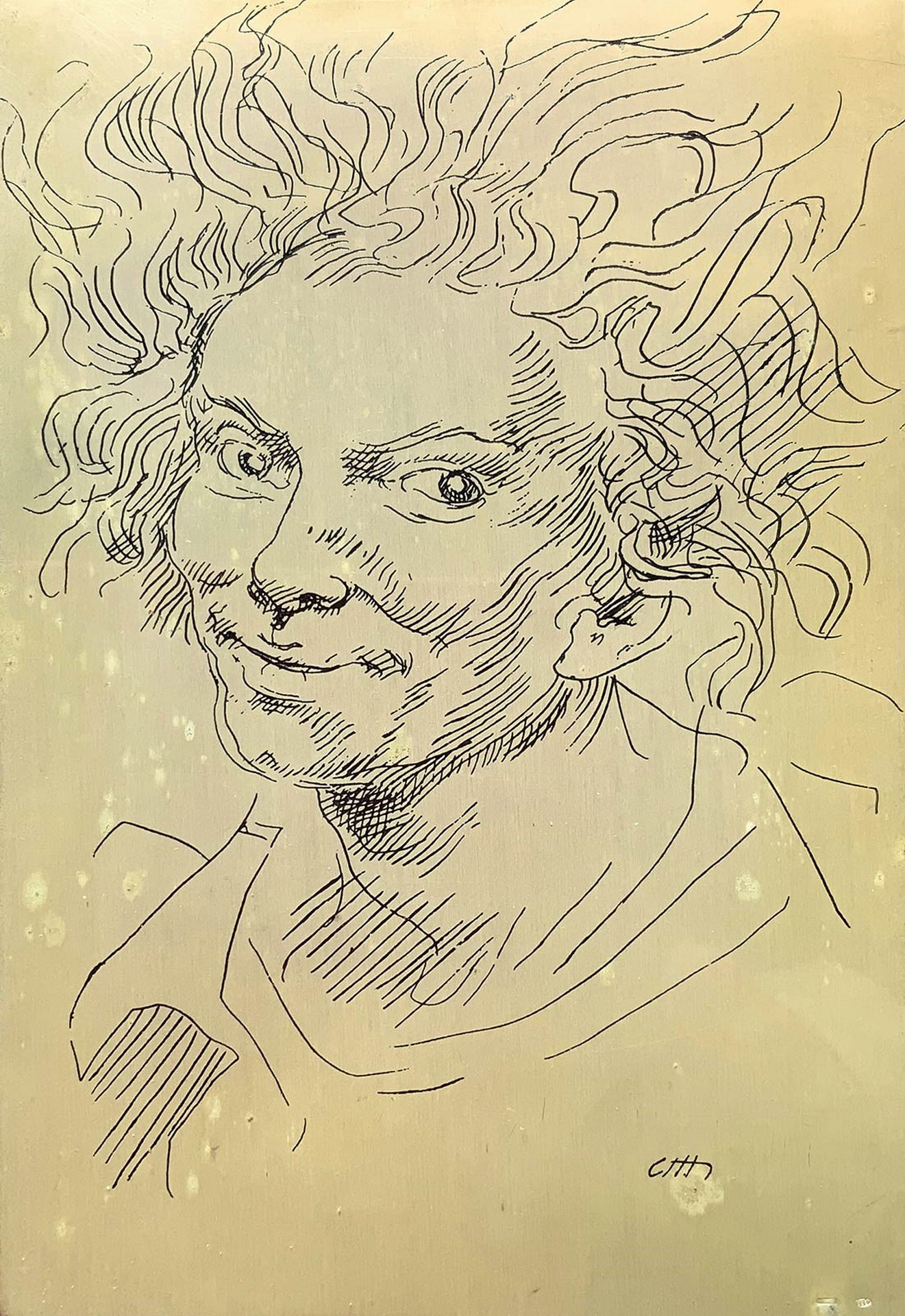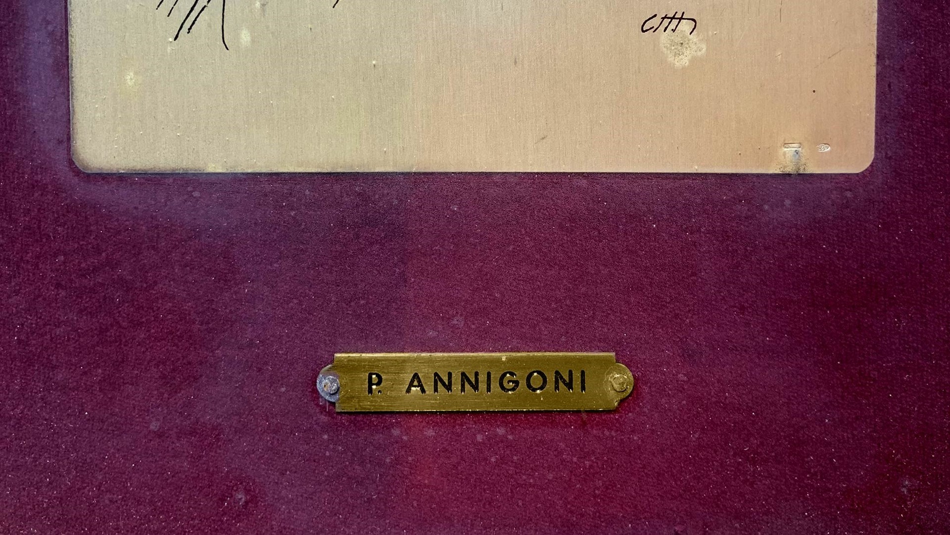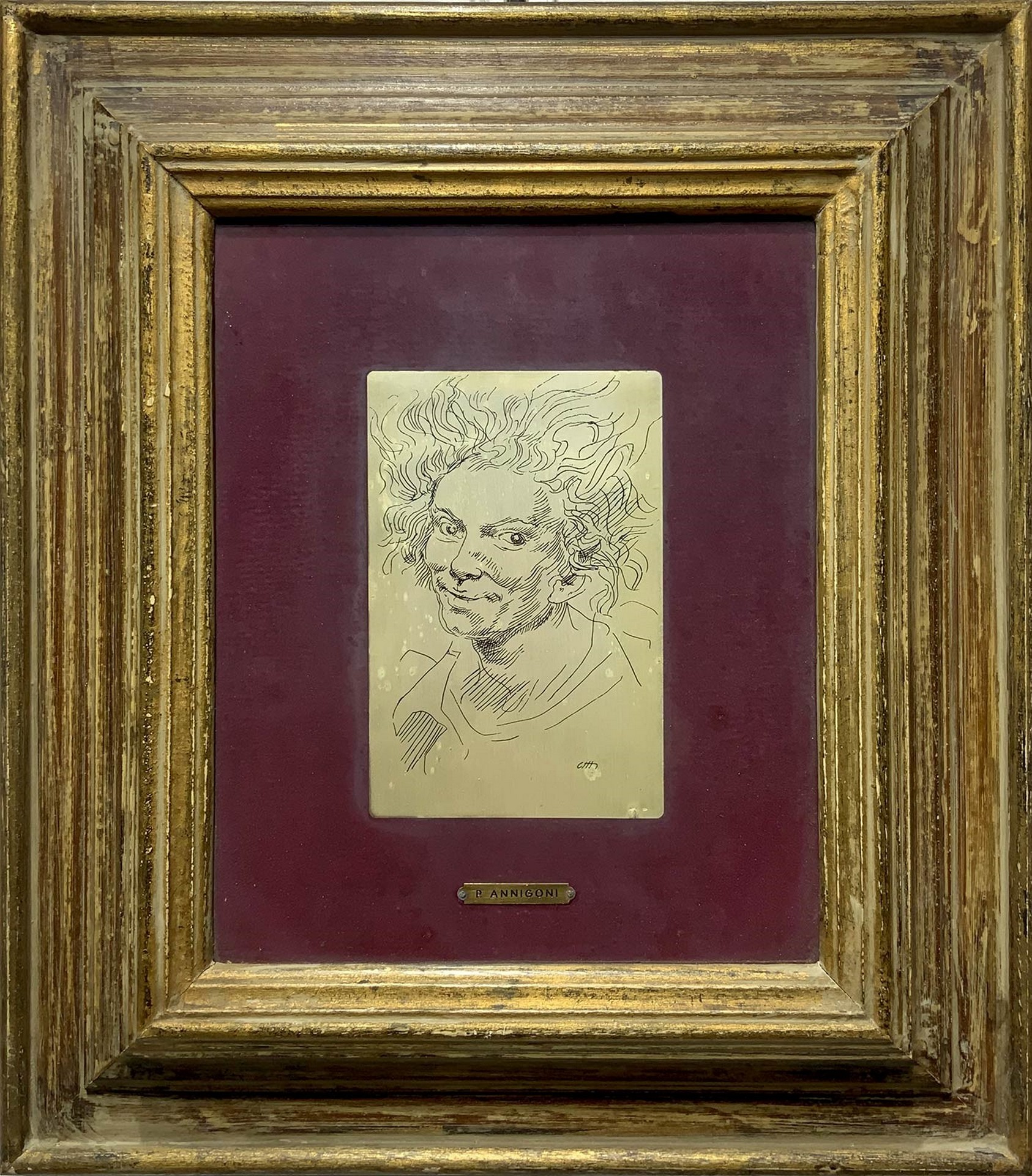 Annigoni, Pietro (Milano 1910-Firenze 1988) - "Elogio della follia" di Erasmo da Rotterdam 12x19 cm, in cornice 51x45 cm Litografia su lastra d'argento In bella cornice di legno dorato
