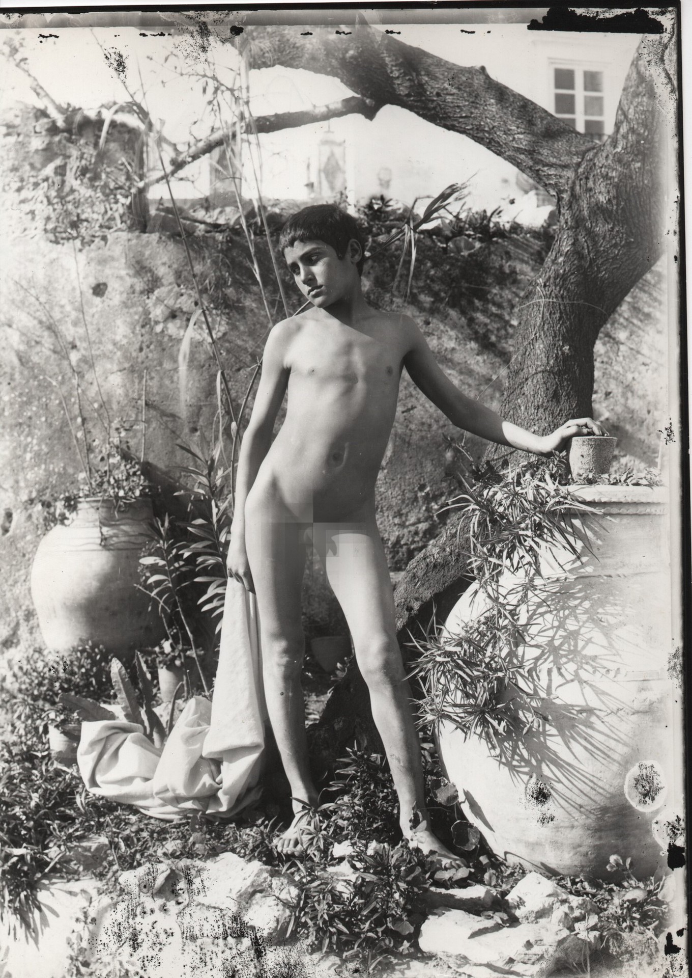 Von Gloeden, Wilhelm (Wismar 1856-Taormina 1931) - Nudo di ragazzo Cm 17X23,6 Fotografia N.373A. Stampa tarda su lastra originale