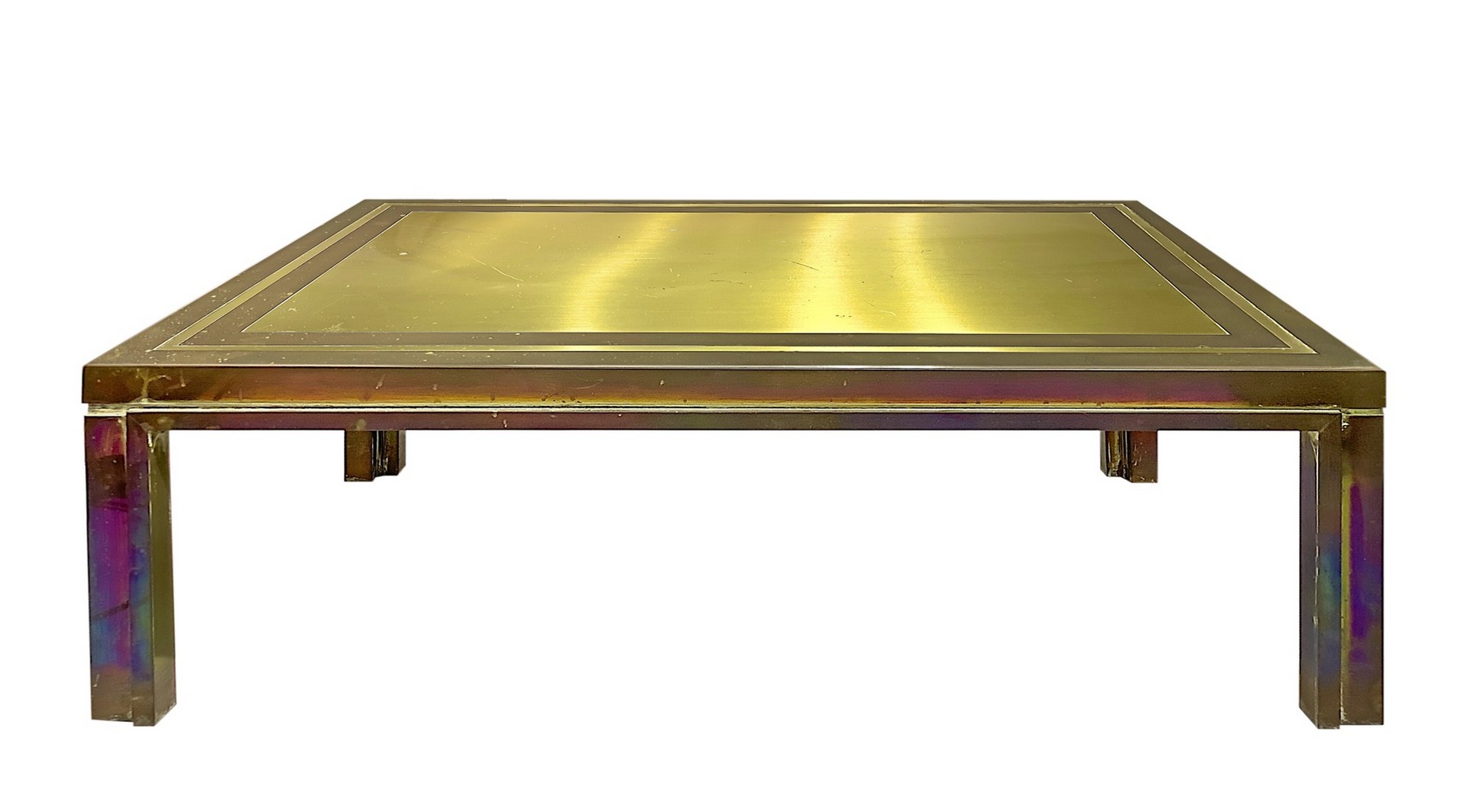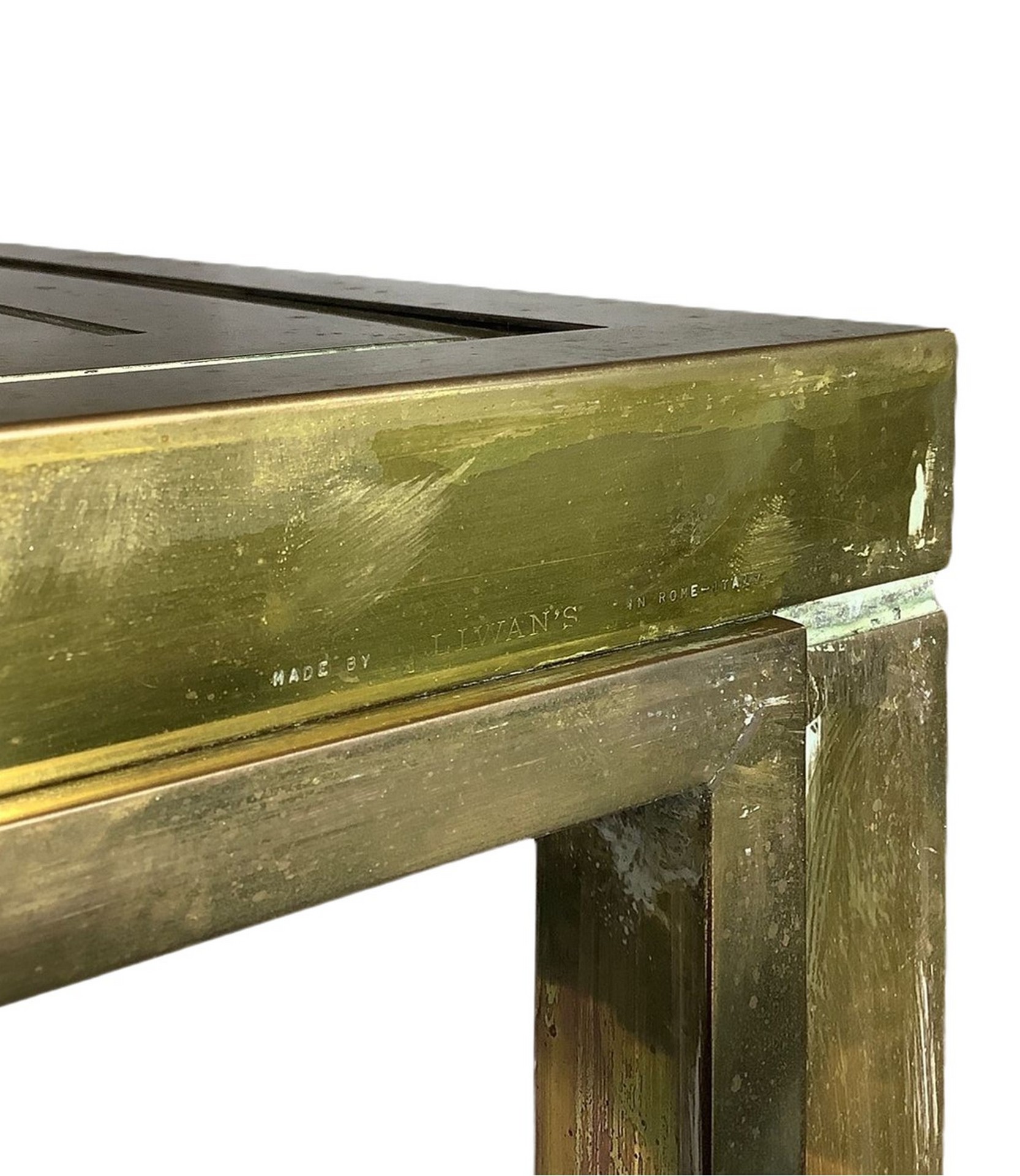 Liwans - Tavolino da caffè H 36x55x85 cm Rilievi geometrici, struttura e superficie interamente in ottone, doppia cornice. Segni d'uso. Roma, Italia.