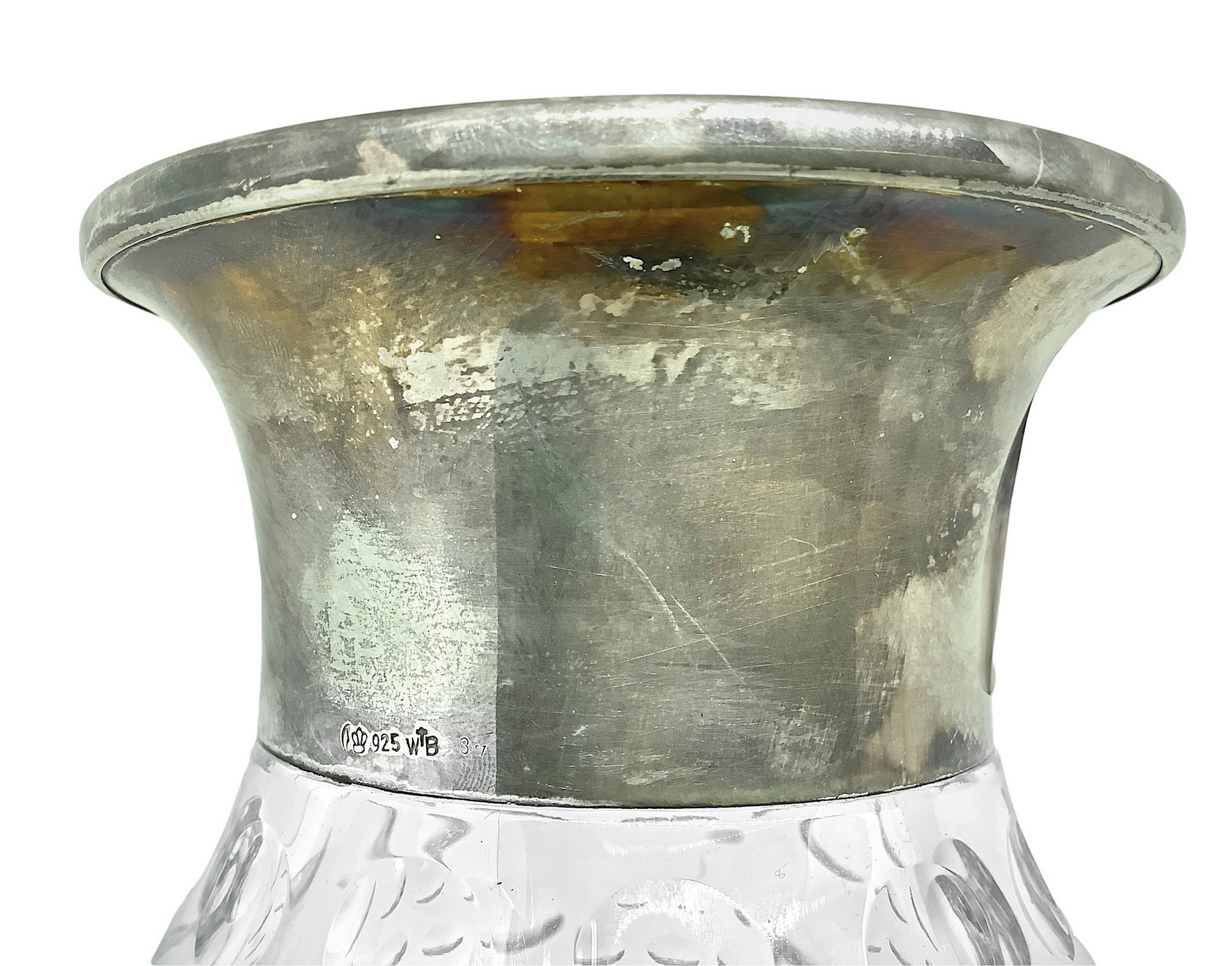 Binder, Wilhelm - Vaso in cristallo pesante a bolle, bocca in argento 825 H cm 27,5, diametro cm 22 Realizzato dal famoso argentiere Wilhelm Binder di Schwabisch Gmund, all'epoca centro dell'argenteria tedesca