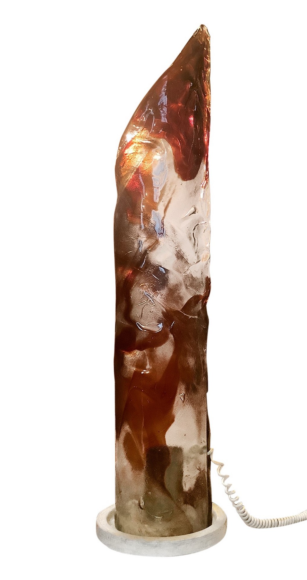 Lampada in vetro di Murano Diametro cm 22, H cm 117. Mazzega, anni '60. Lampada da terra, base in travertino e corpo in vetro variegato.