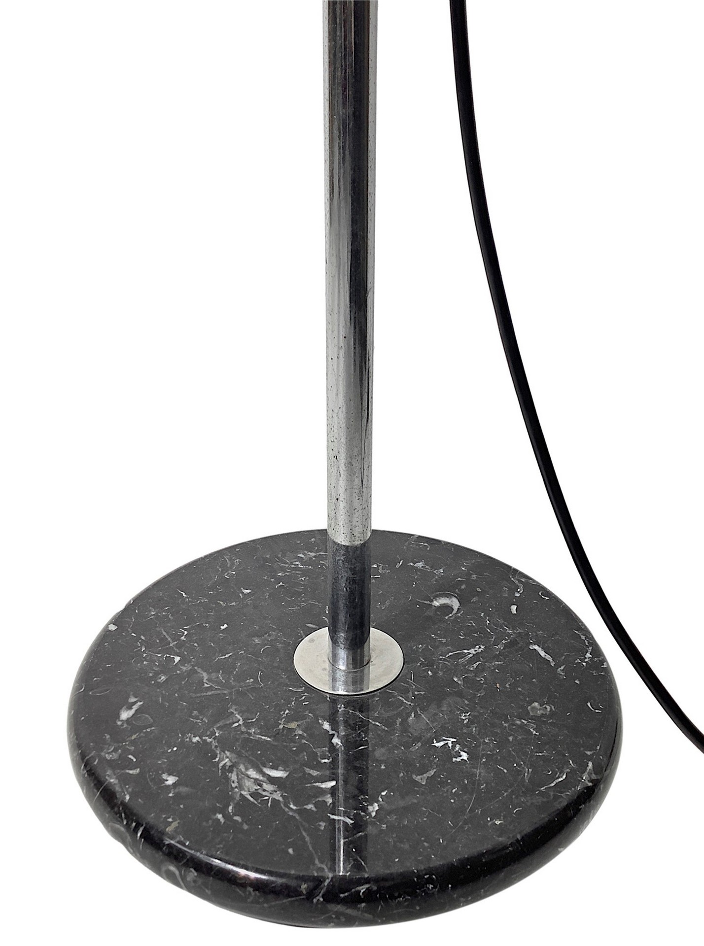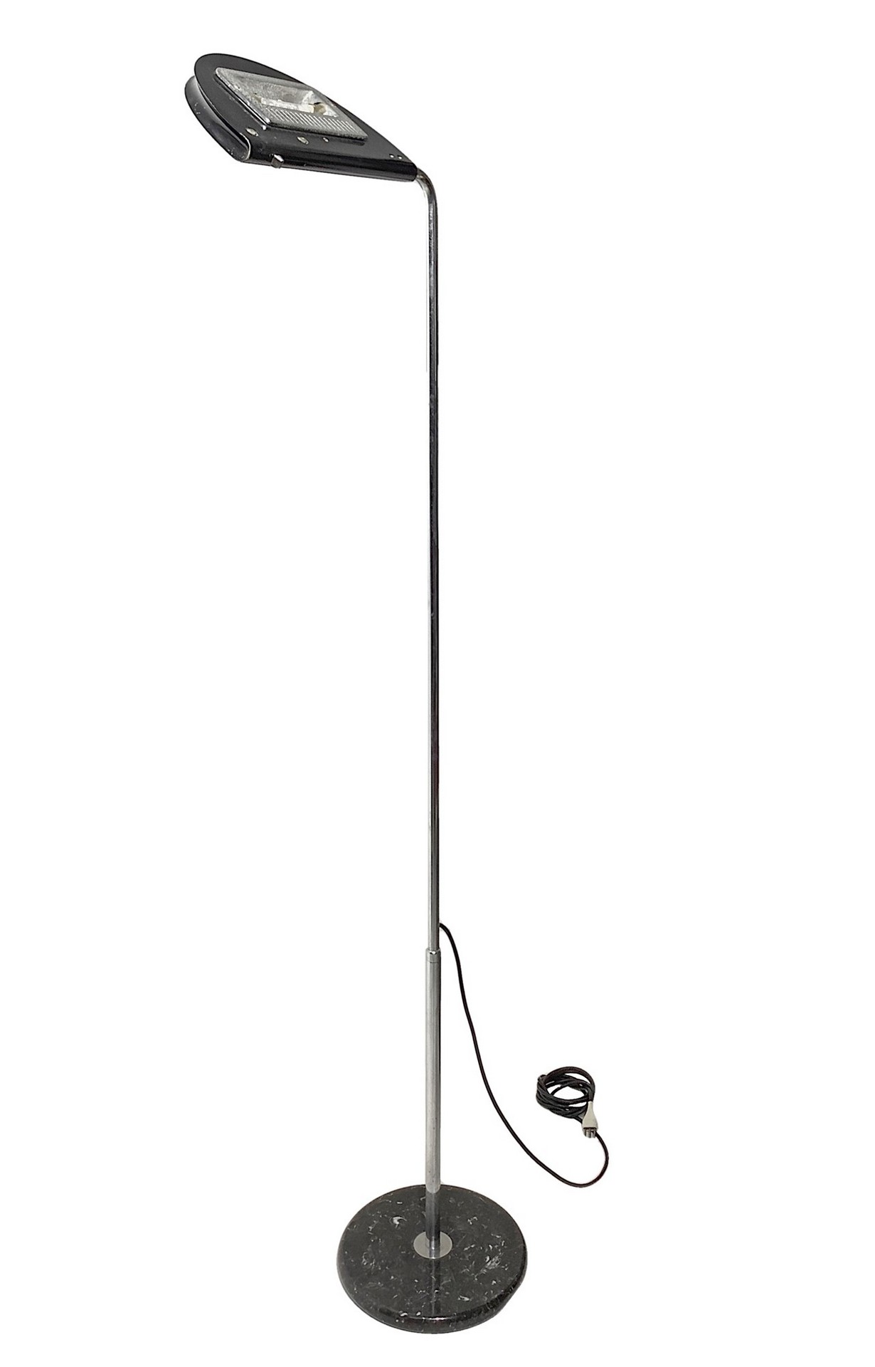 Gecchelin, Bruno (1939) - Piantana, modello a mezzaluna H cm 179 Produzione Skipper, con struttura tubolare cromata, base in marmo nero marquinia, illuminazione alogena.