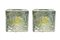 Coppia di appliques, produzione muranese nello stile Mazzega. 23x23x7 cm Forma quadrata con struttura in metallo cromato, diffusore in vetro di forte spessore con inclusioni di pasta vitrea nei toni dell'ambra . Superficie con lacvorazione a finitura ghiacciata. Segni d'uso e tracce di ossido.
