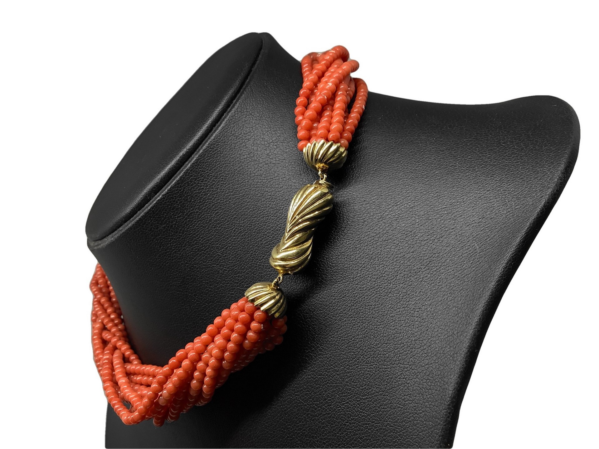 Collana in corallo rosso e susta in oro 80, 5 gr. 20 cm 11