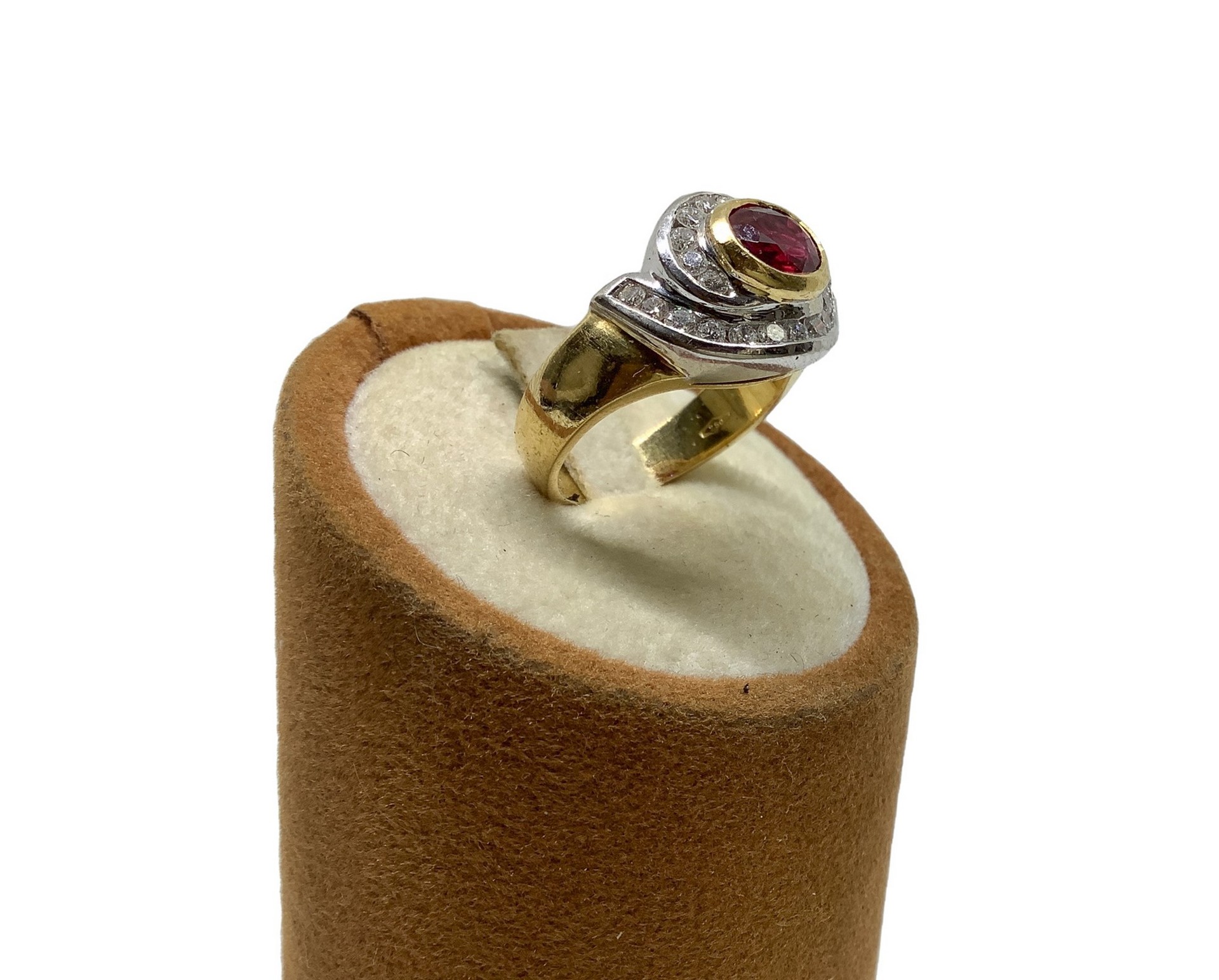 Lot 352 | Anello in oro giallo e bianco, centrale di rubino e corona d