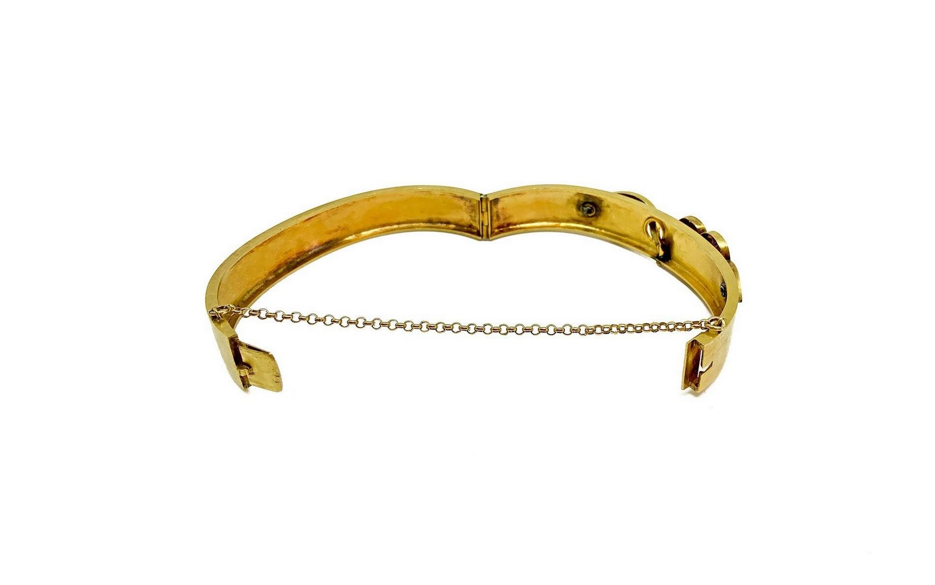 Bracciale in oro giallo Gr 18,4 Centrale con applicazioni in oro, micro perline e rubini.