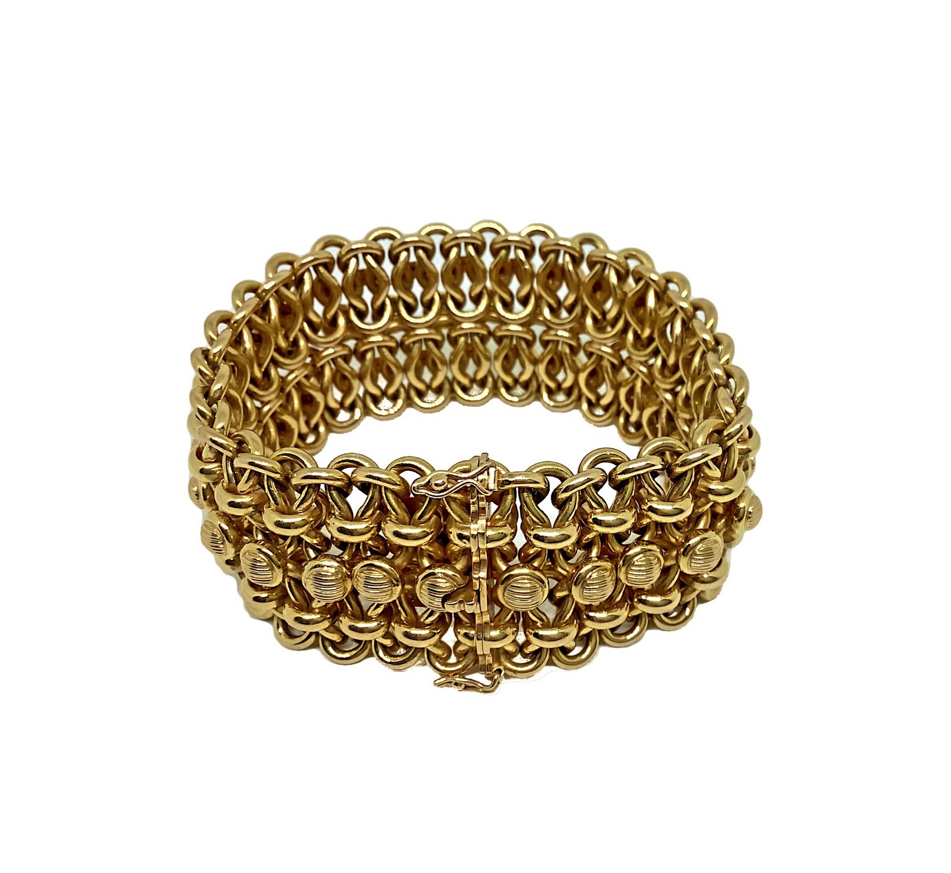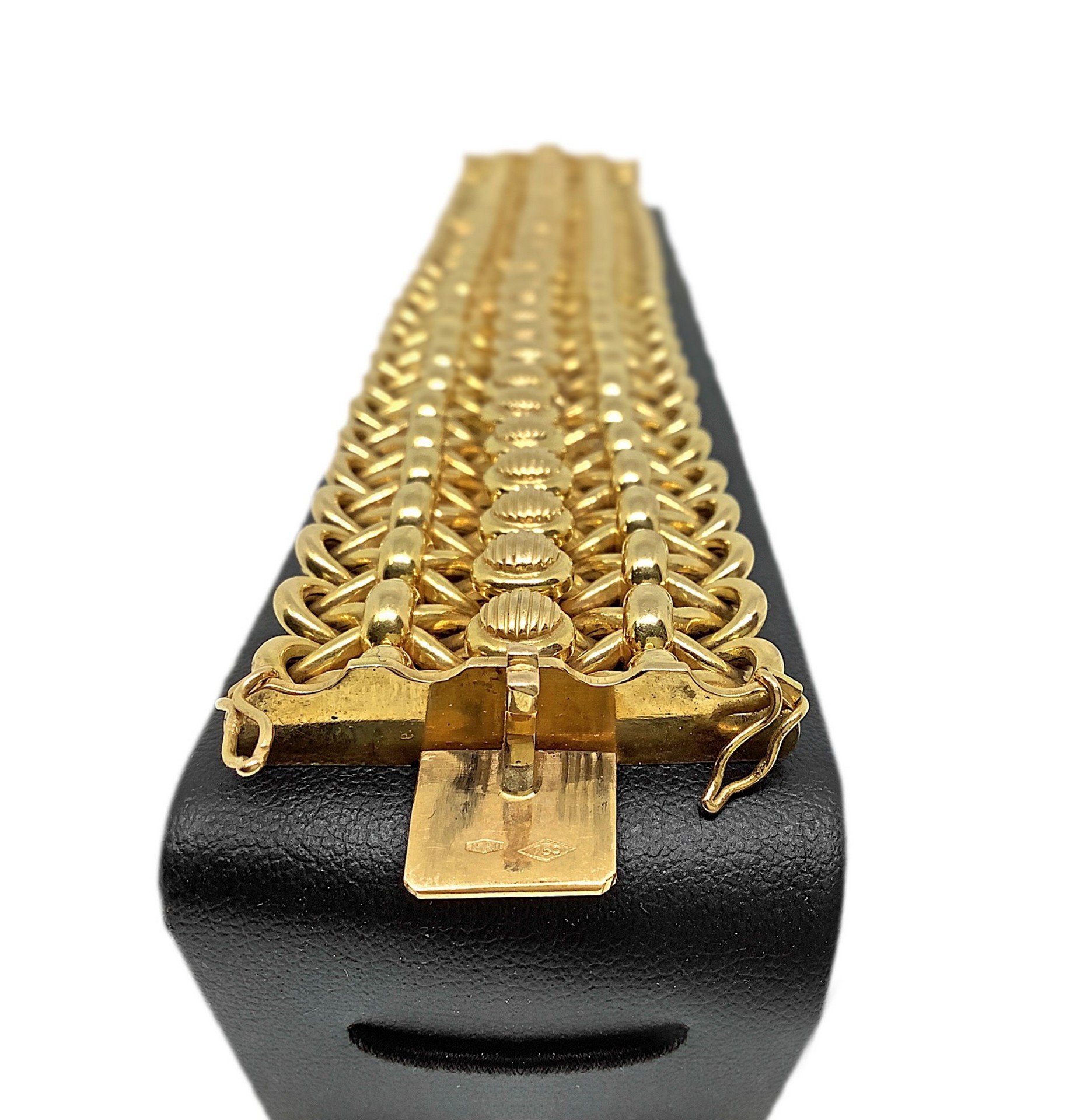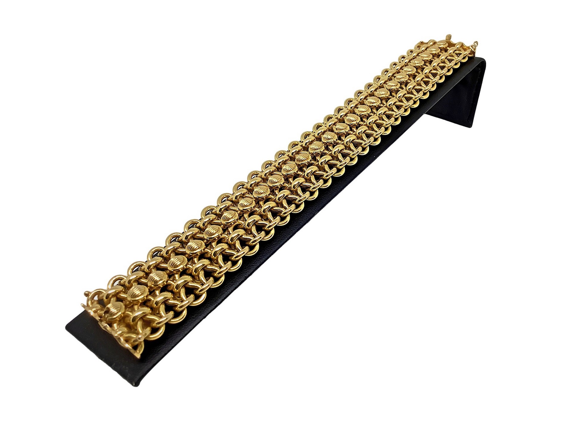 Lot 381 | Importante bracciale in oro giallo a fascia gr 75, larghezz