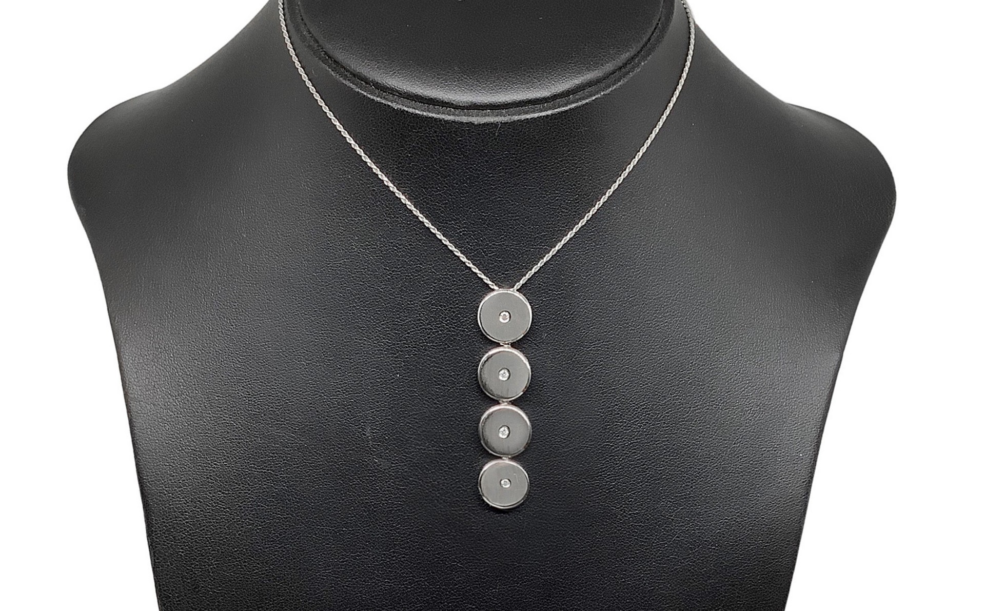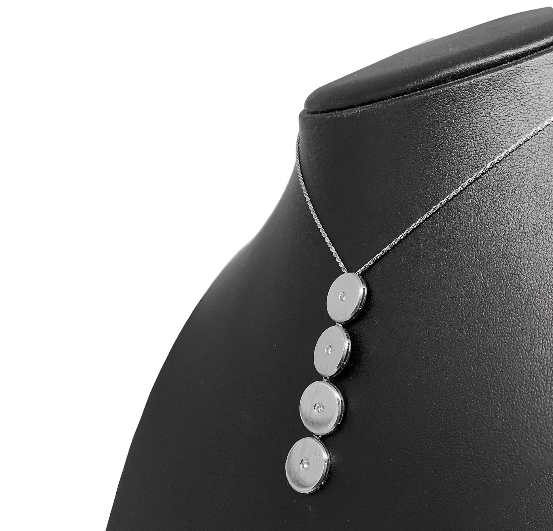 Collana in oro bianco con pendente centrale Gr 11.5 Pendente formato da quattro cerchi con al centro brillantini