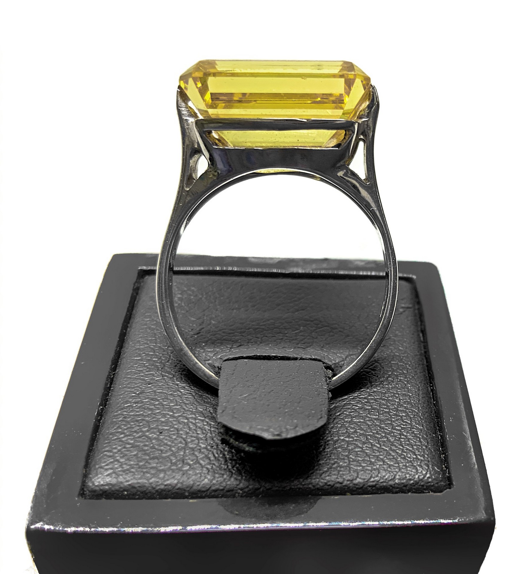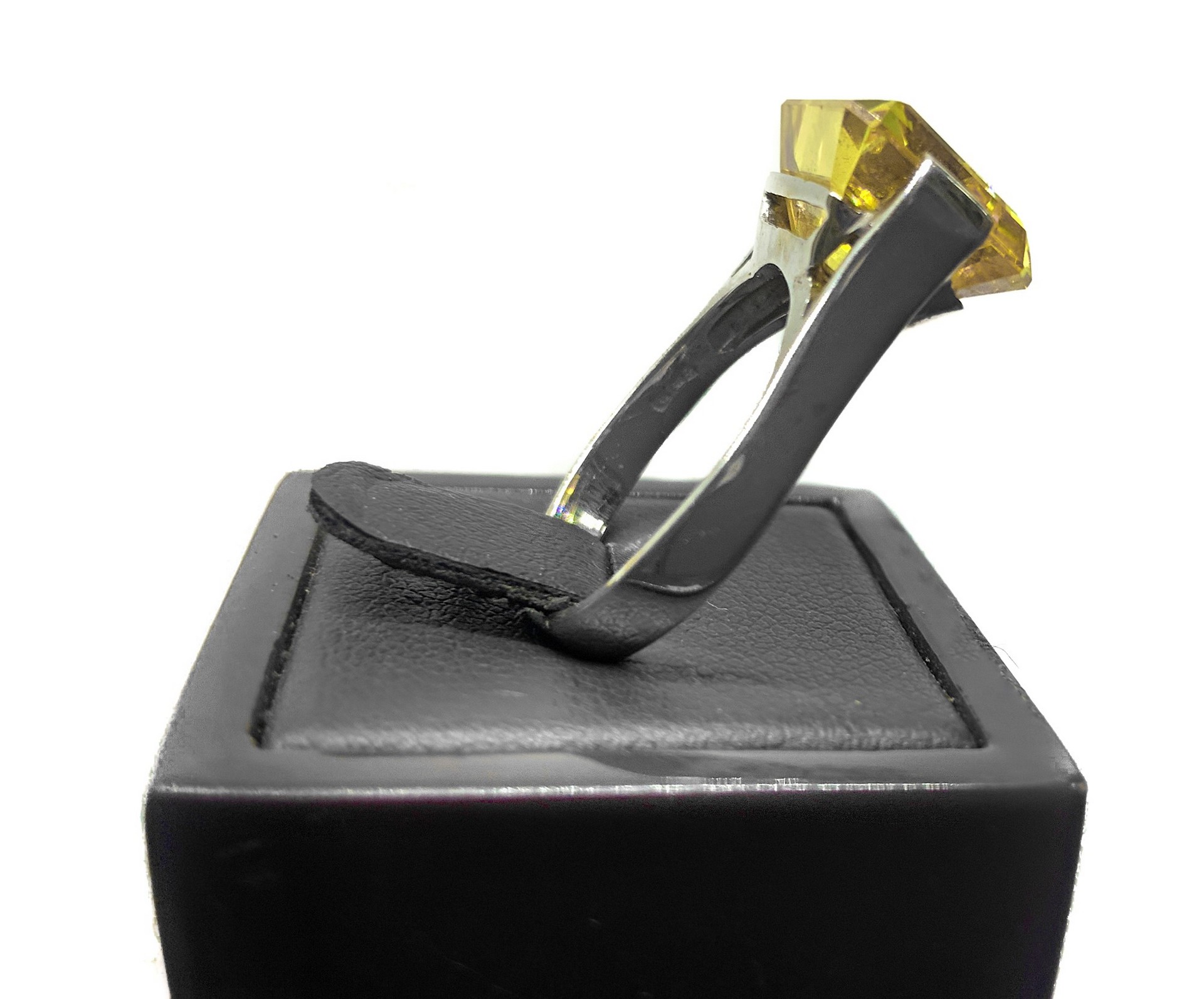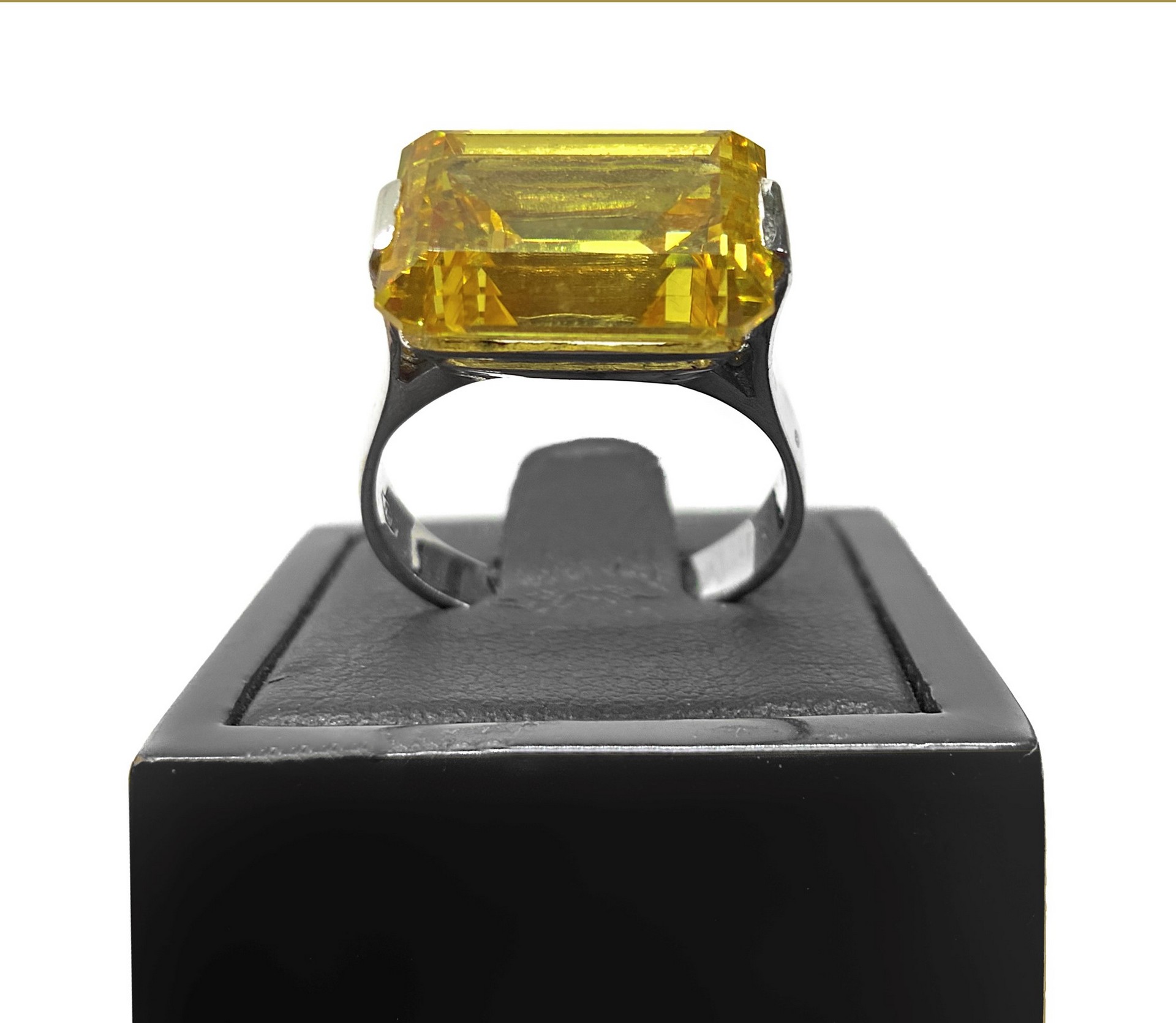 Anello in oro bianco e pietra Gr. 7, misura 14 Lavorazione in oro bianco, topazio centrale rettangolare sfaccettato