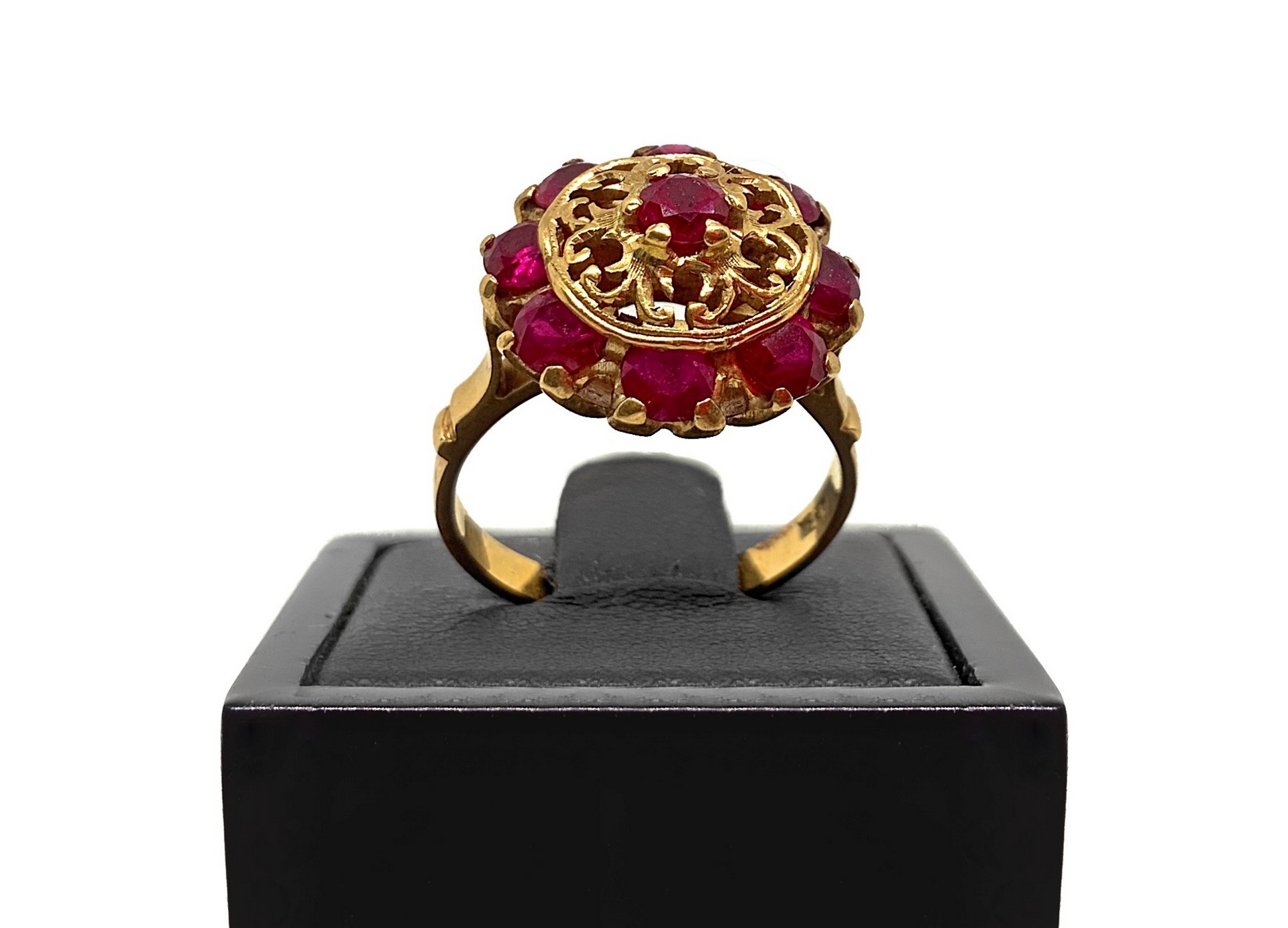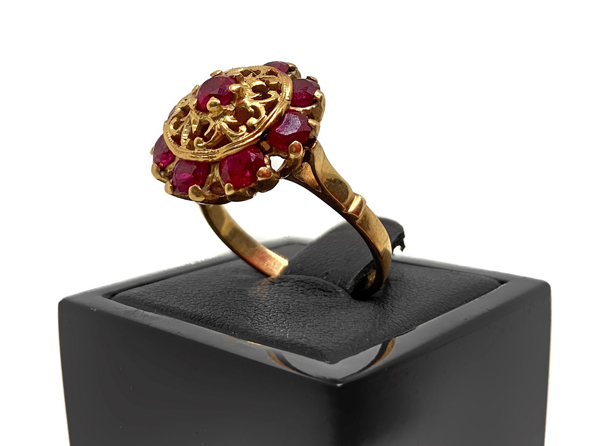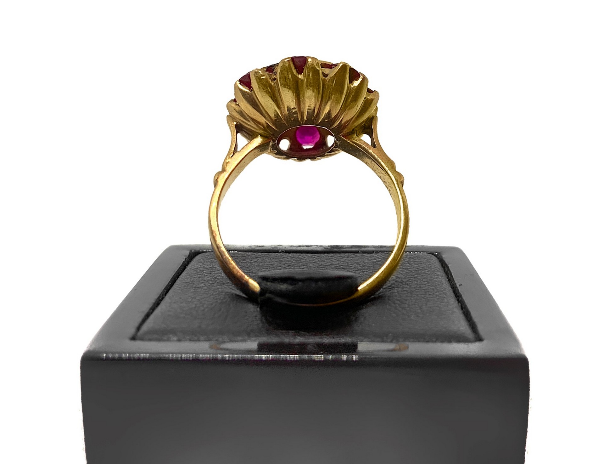 Anello in oro con pietre, 20th century Gr 5 Montatura in oro rosso, otto piccoli granati a giro più uno centrale