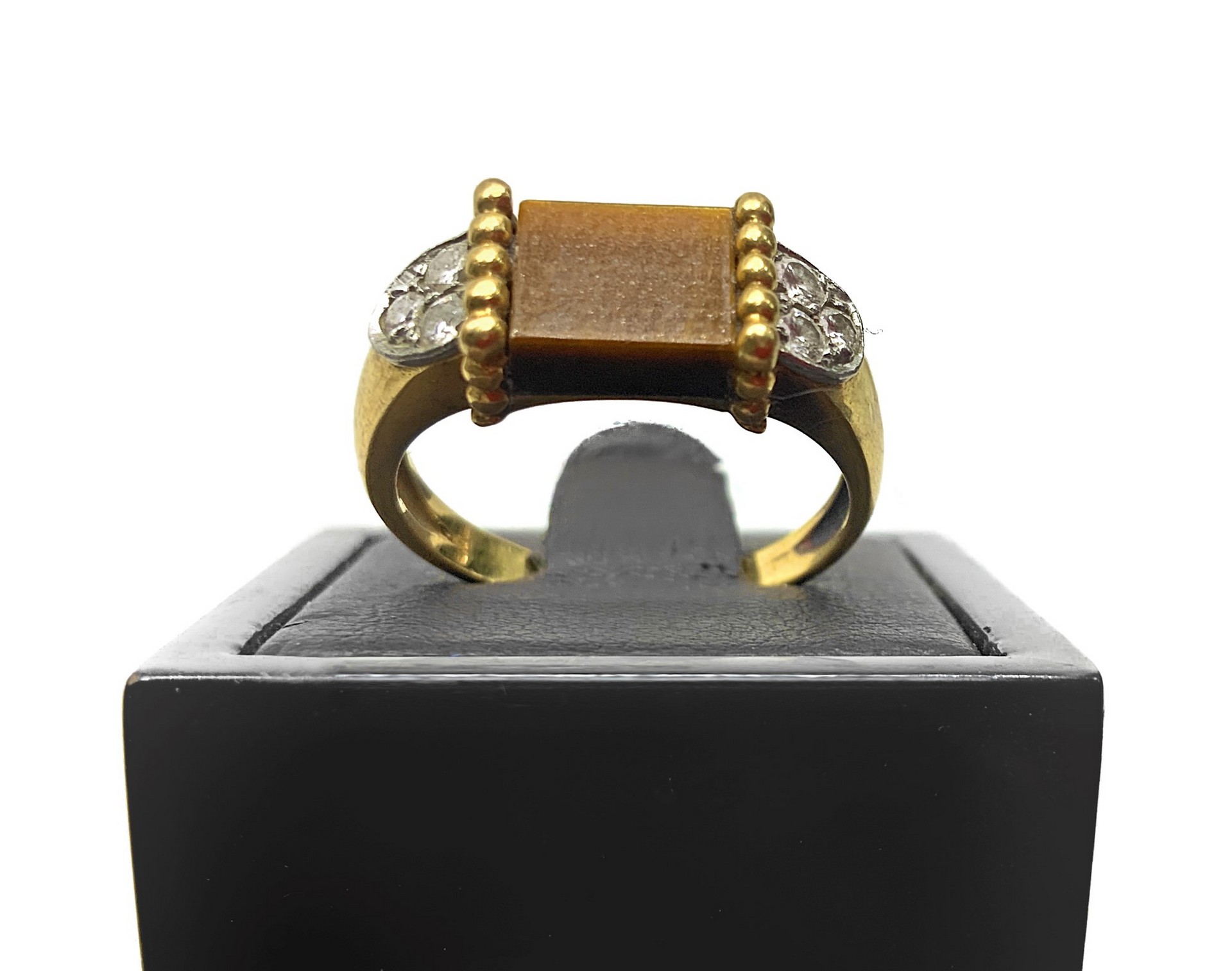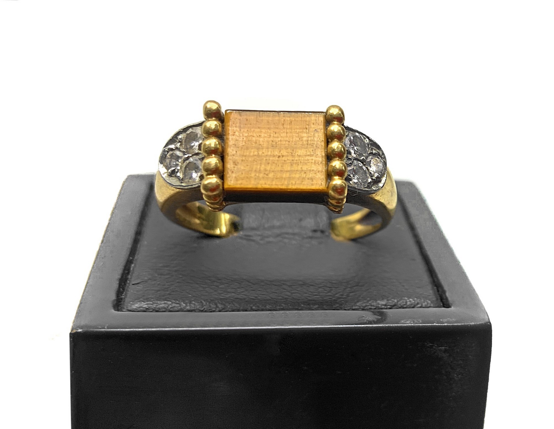 Anello in oro e pietre, 20th century Gr. 4,4, misura 13 Lavorazione in oro rosso con corniola e laterali con brillantini.