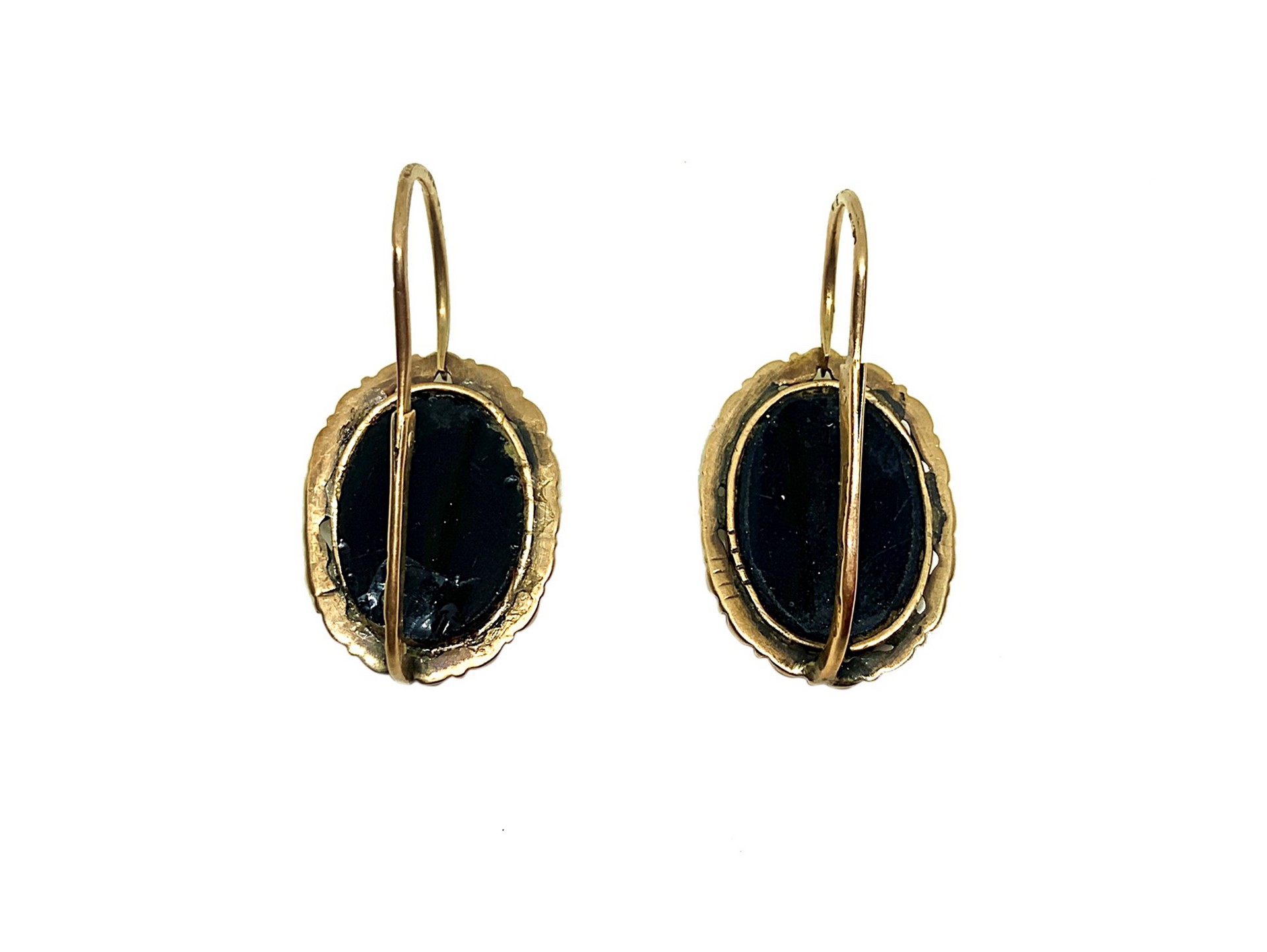 Orecchini in oro a titolo basso Con pietra avventurina. Punzonati.