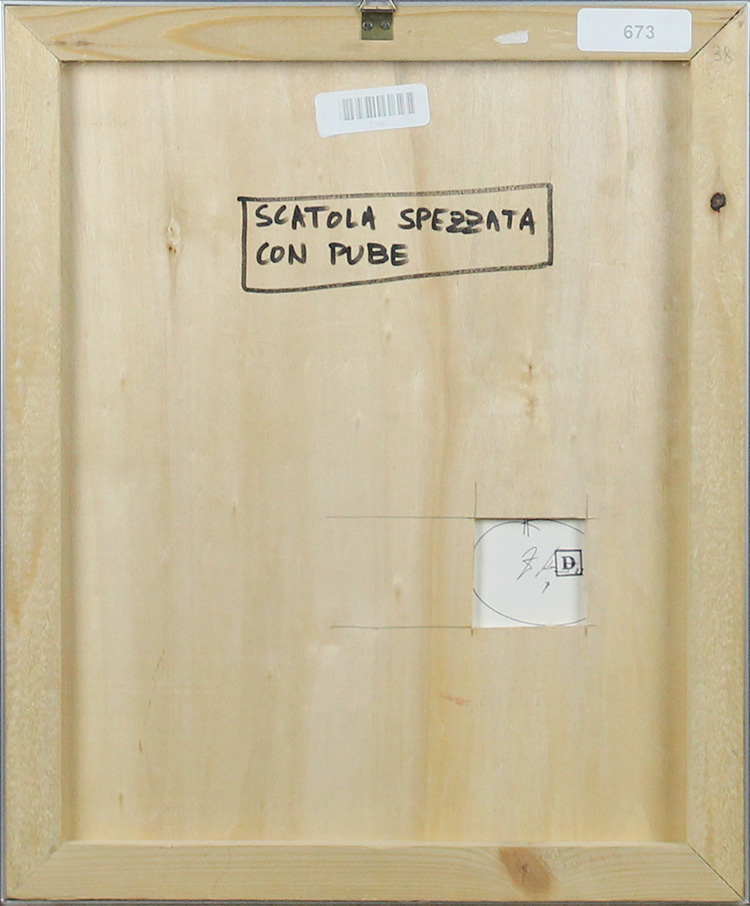 Jiri Kolar, "Scatola spezzata con pube", Anni ‘70, Collage su cartoncino, Dim. 40x33