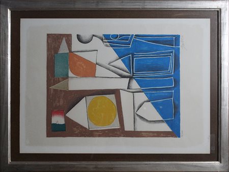 Franco Gentilini, Senza titolo, Anni '70, Litografia su cartoncino, Dim. 70x50, Al fronte: esemplare n° 76/100in basso a sinistra, timbro a secco "Baldoni stampatore d' arte" e firmato in basso a destra