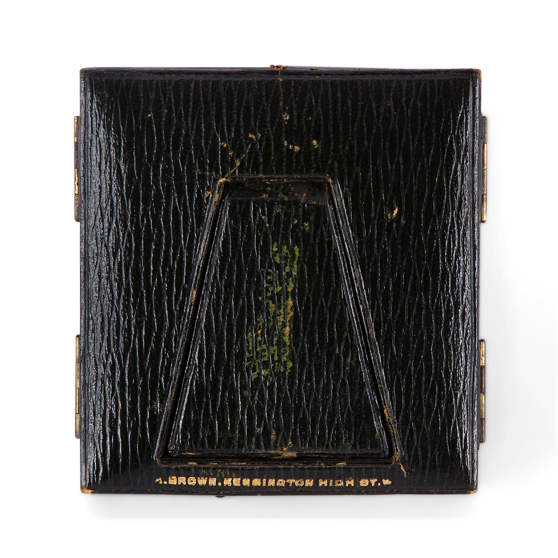 Miniatura con ritratto di gentildonna e fiore sul petto, Inghilterra seconda metà XVIII secolo Cornice con pietre faccettate, custodia in pelle moderna firmata "Braun Kensington High Street" Dimensioni 9x8,5 cm.