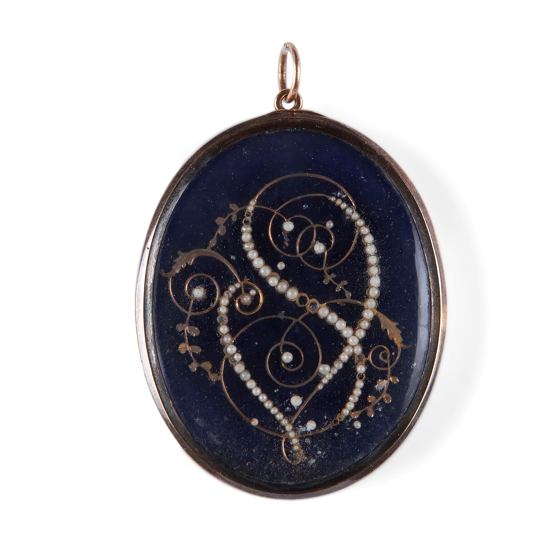 Miniatura con ritratto di ufficiale, Inghilterra fine del XVIII secolo Sullo sfondo è raffigurata una postazione di artiglieria, il retro del medaglione decorato con iniziali in perline; cornice in oro Dimensioni 5,5x4 cm.