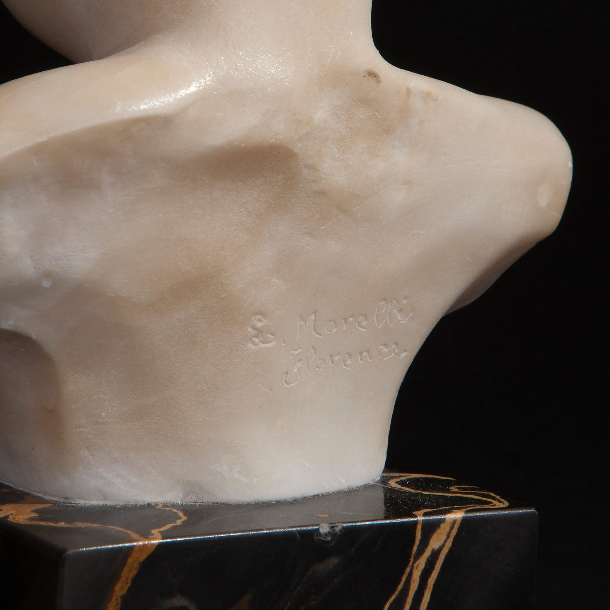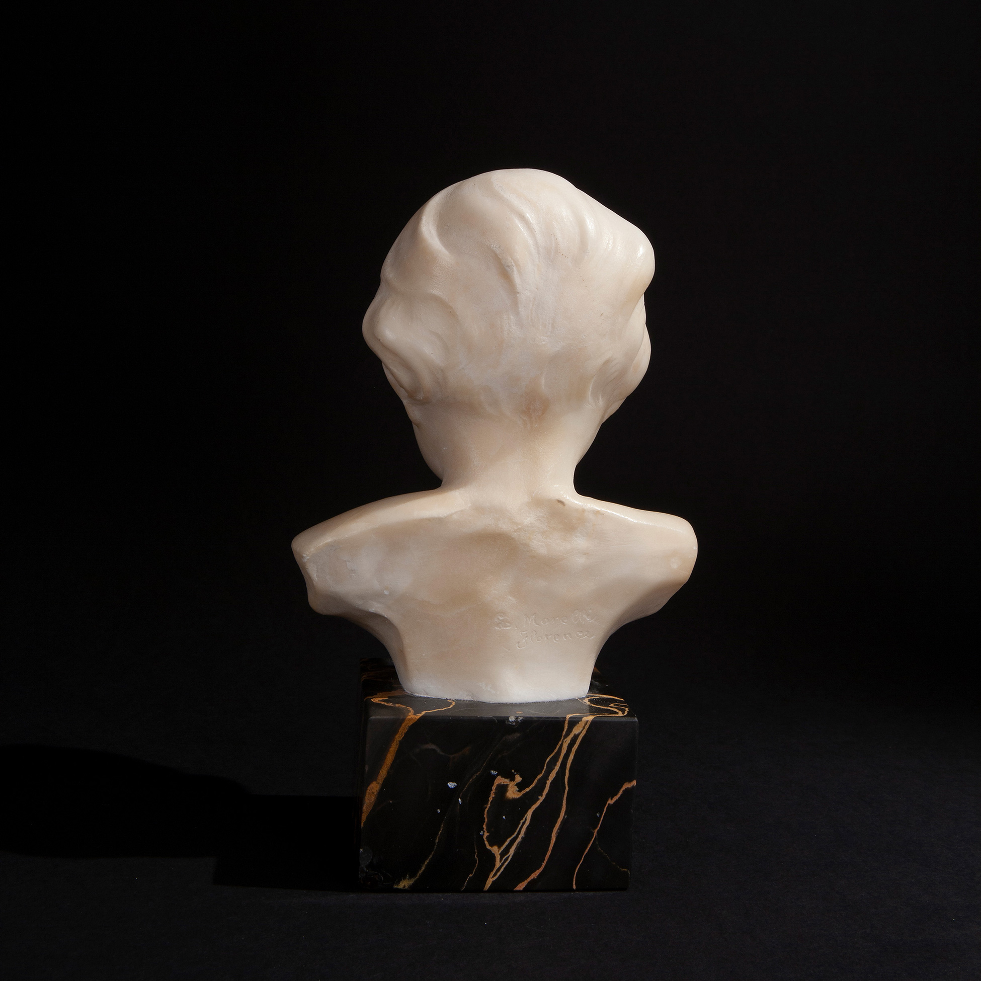 Scultura in marmo bianco raffigurante busto di Infante, Firenze XIX secolo Firmata L. Morelli Dimensioni 20,5x12x9 cm.