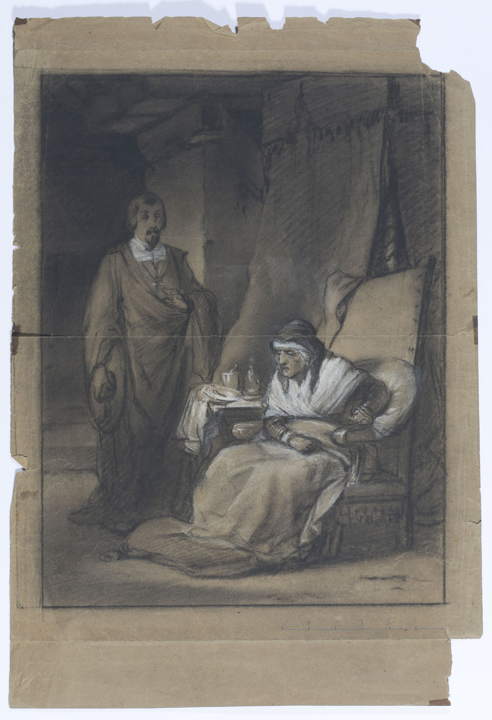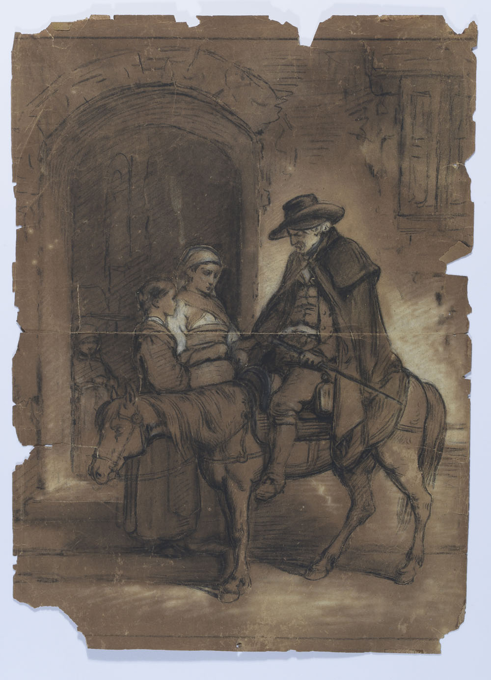 Scuola europea del XIX secolo Scene di genere, 2 nel lotto Matita di grafite...