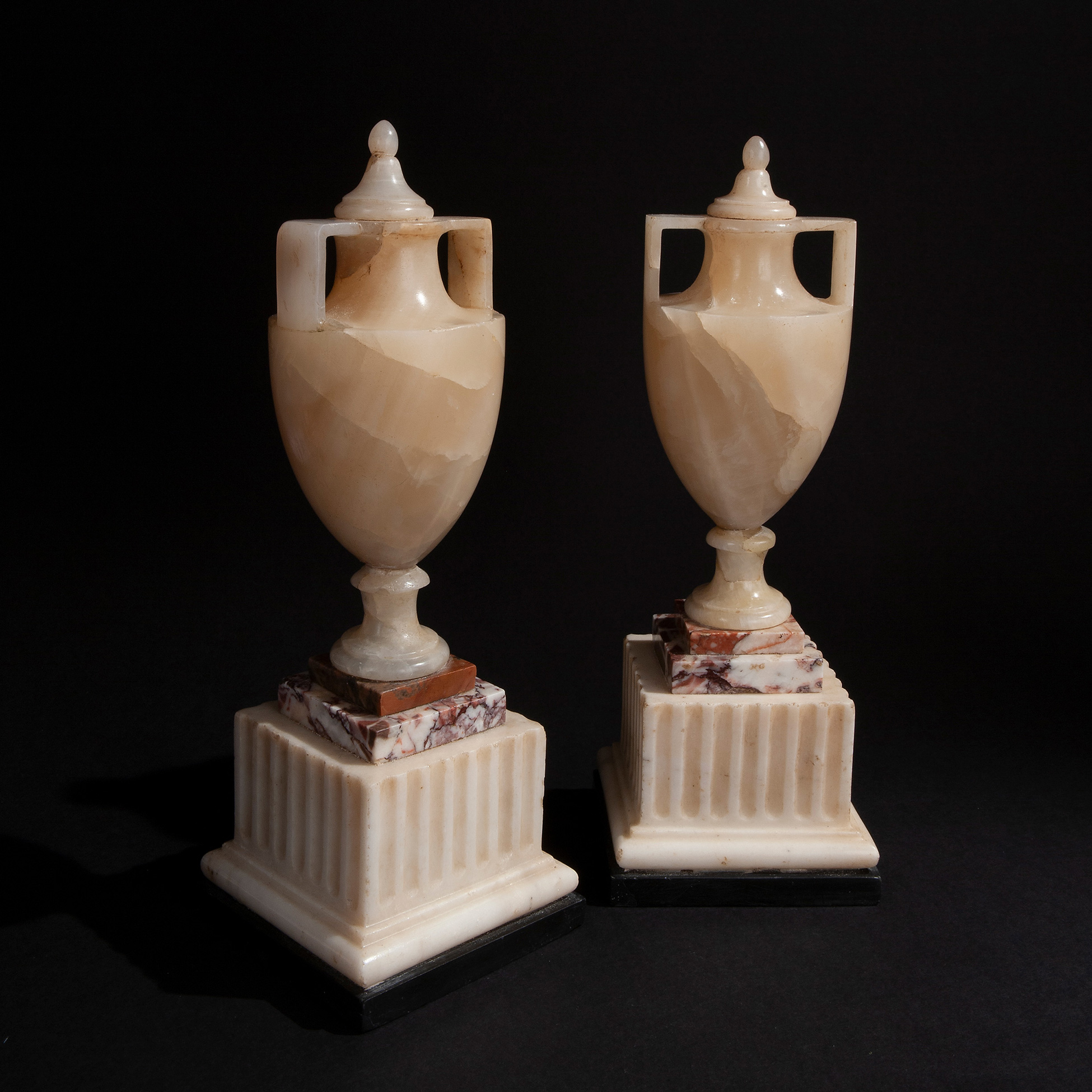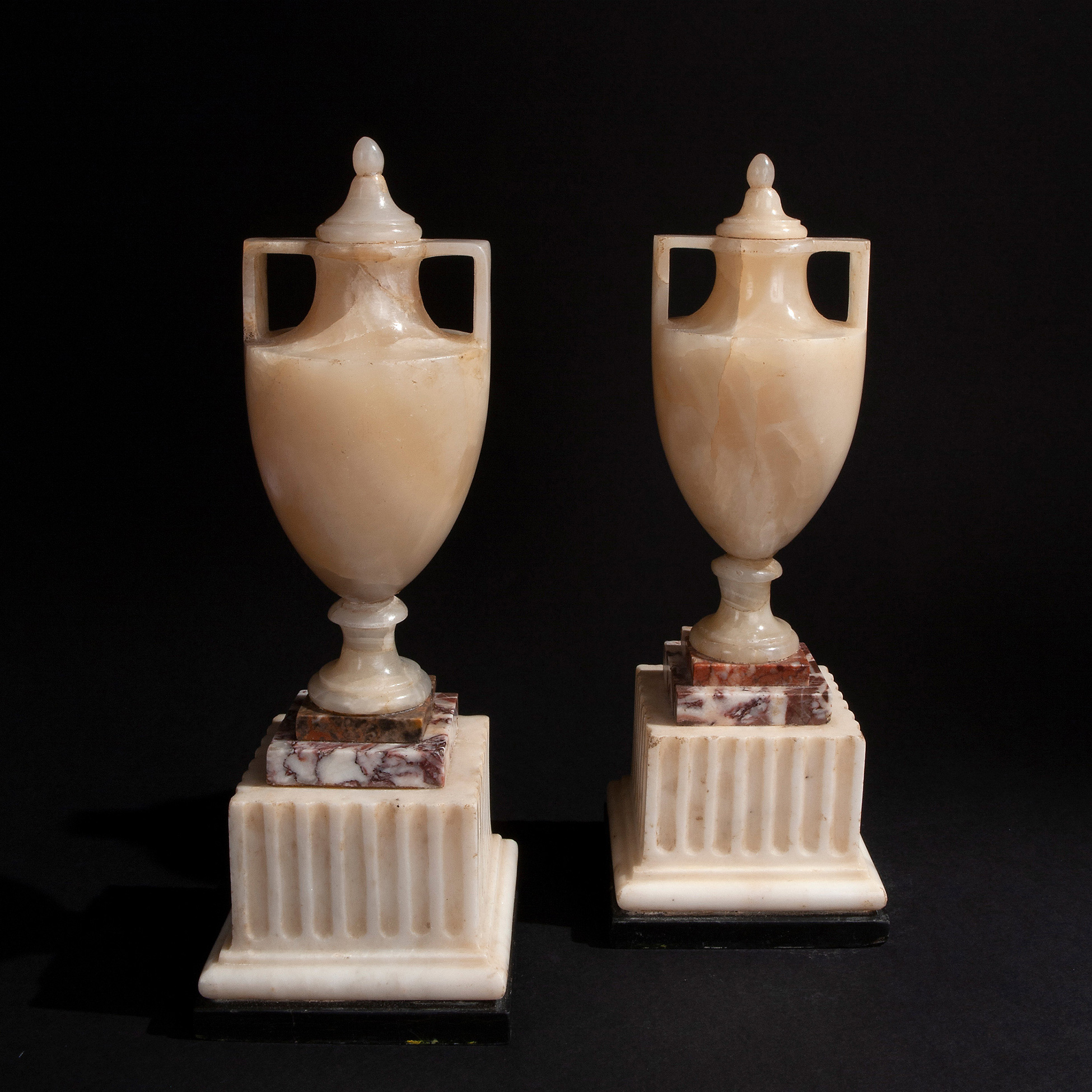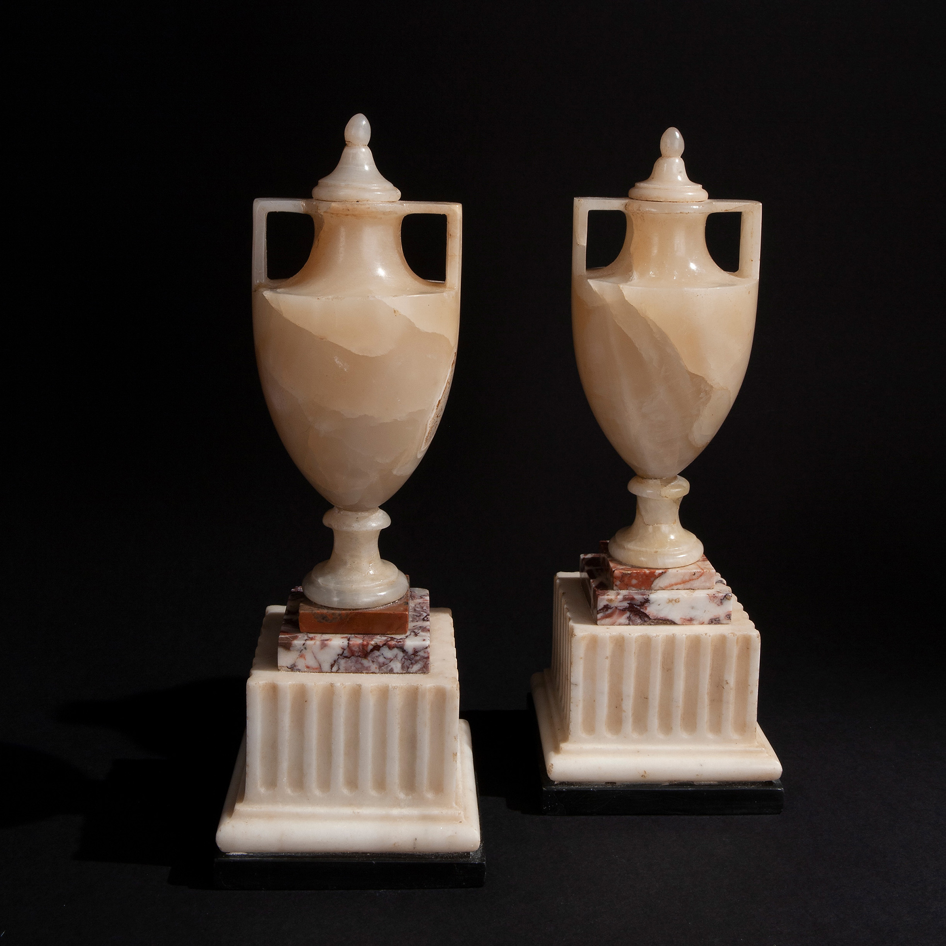Coppia di vasi con coperchio in alabastro, Italia XIX secolo