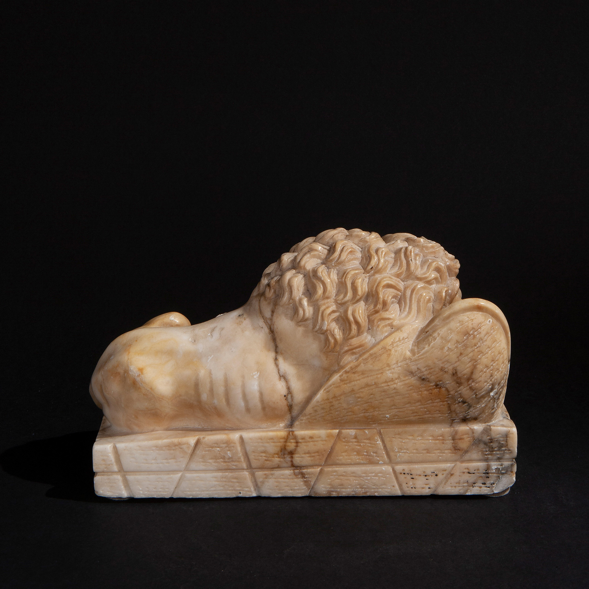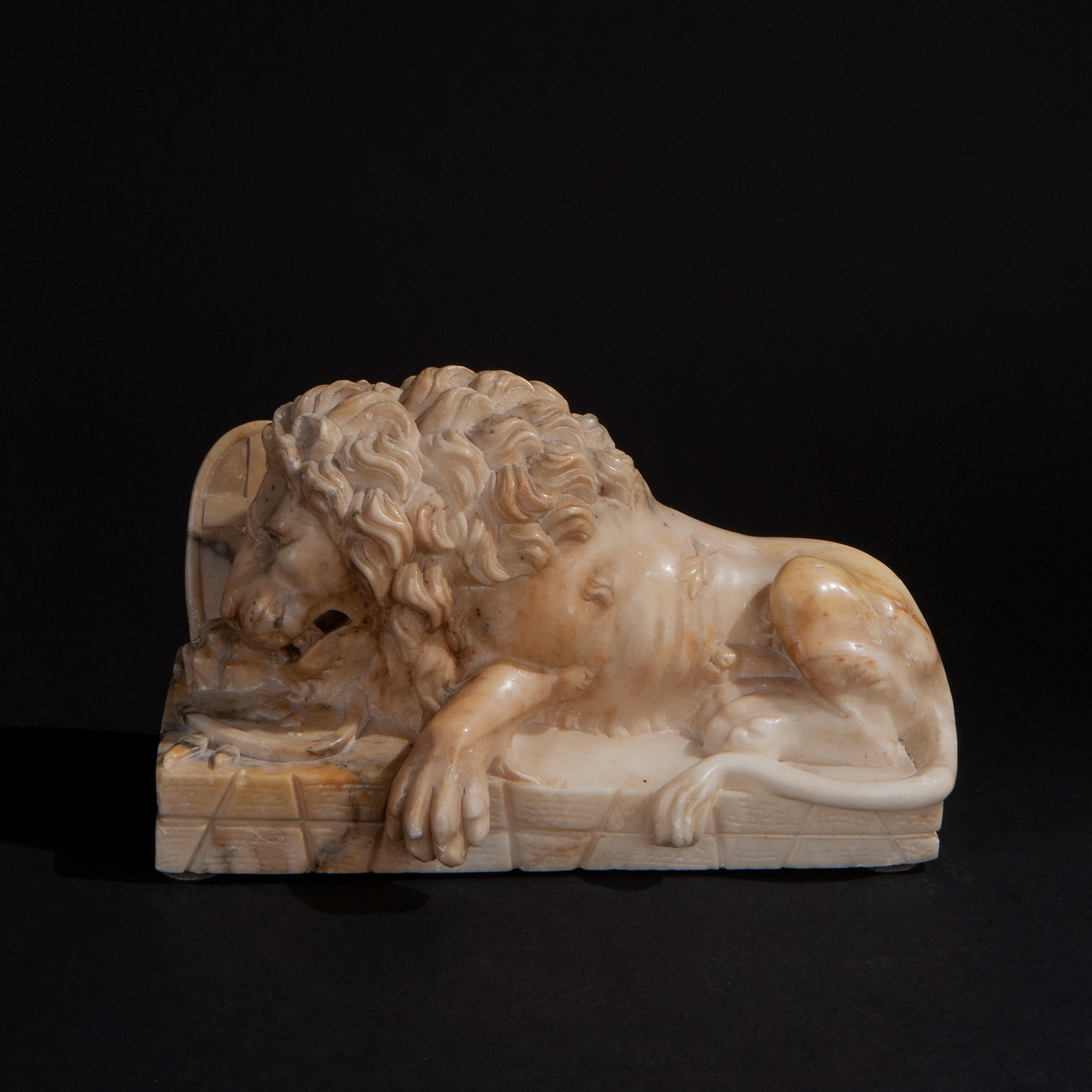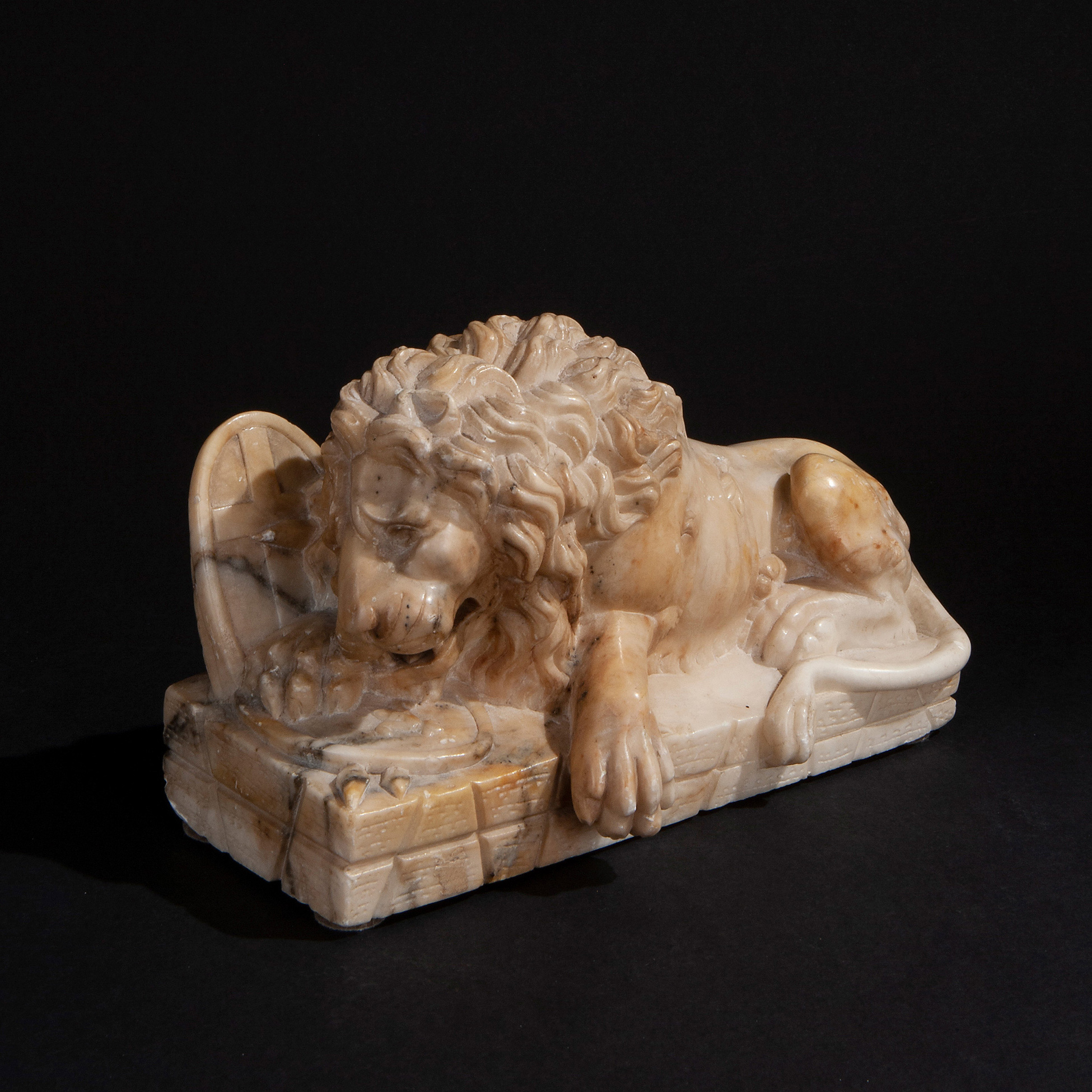 Scultura in alabastro raffigurante il "Leone di Lucerna", Italia XIX secolo Il Leone di Lucerna è un monumento della città Svizzera progettato da Berthel Thorvaldsen, ed eseguito da Lukas Ahorn nel 1820-1821 per commemorare il massacro delle guardie svi