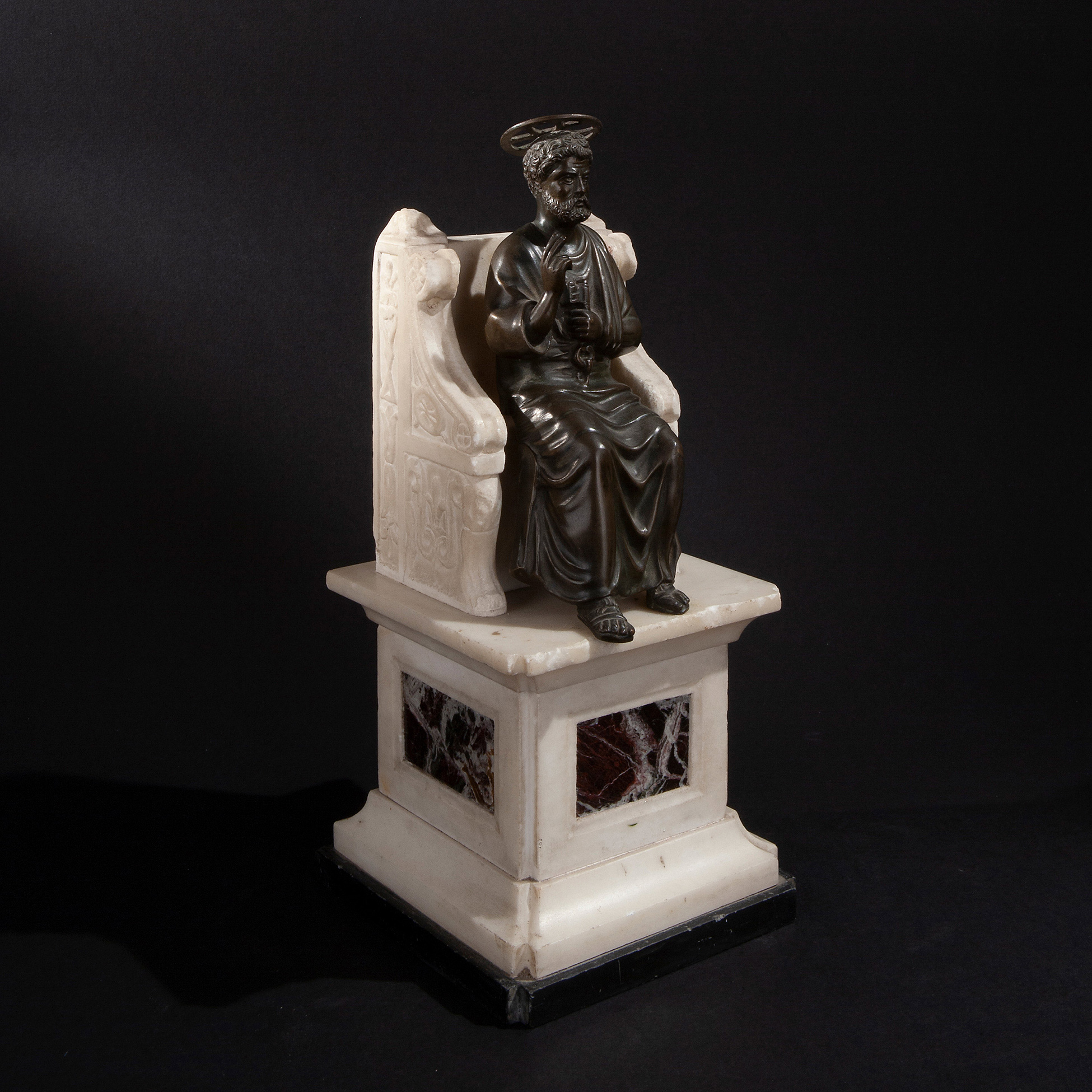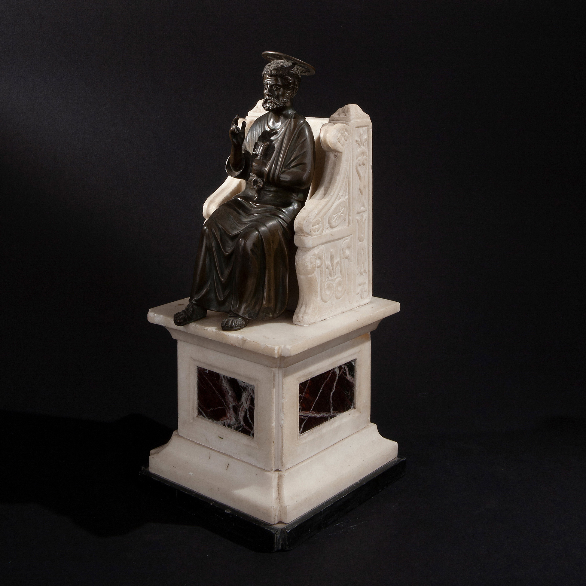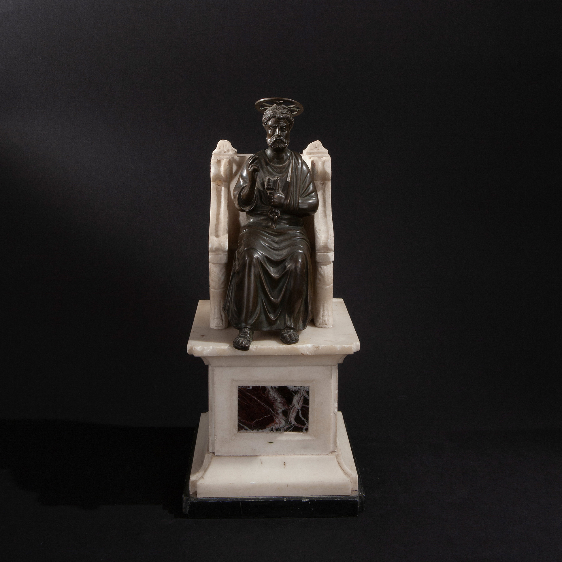 Scultura in bronzo raffigurante San Pietro seduto sul trono, Italia XIX secolo