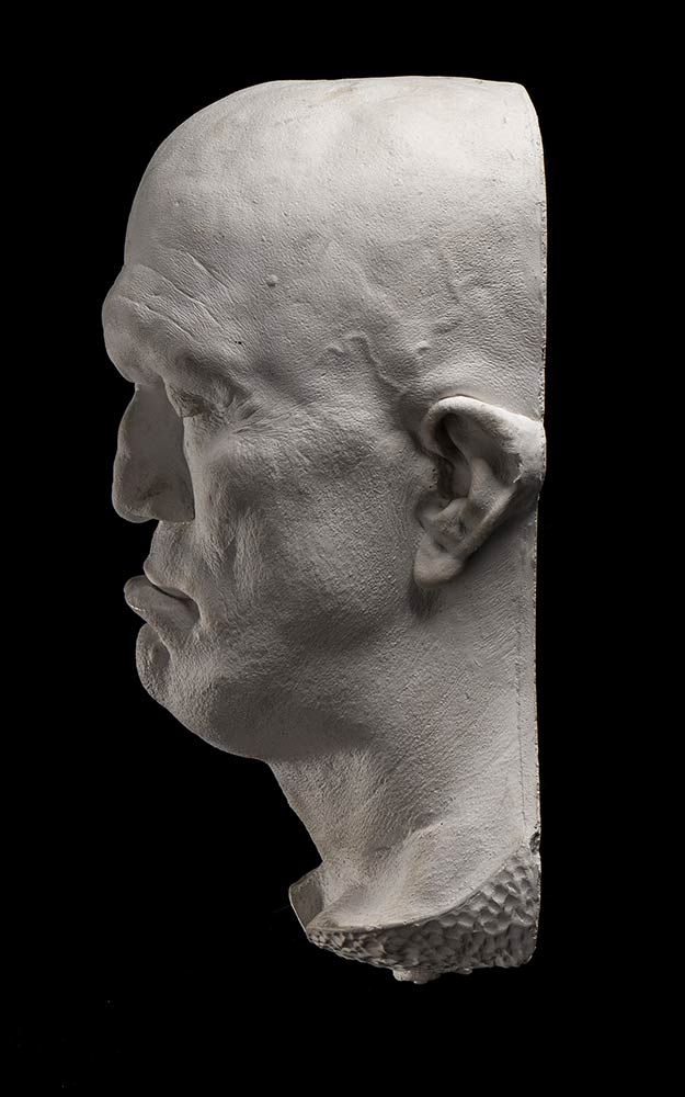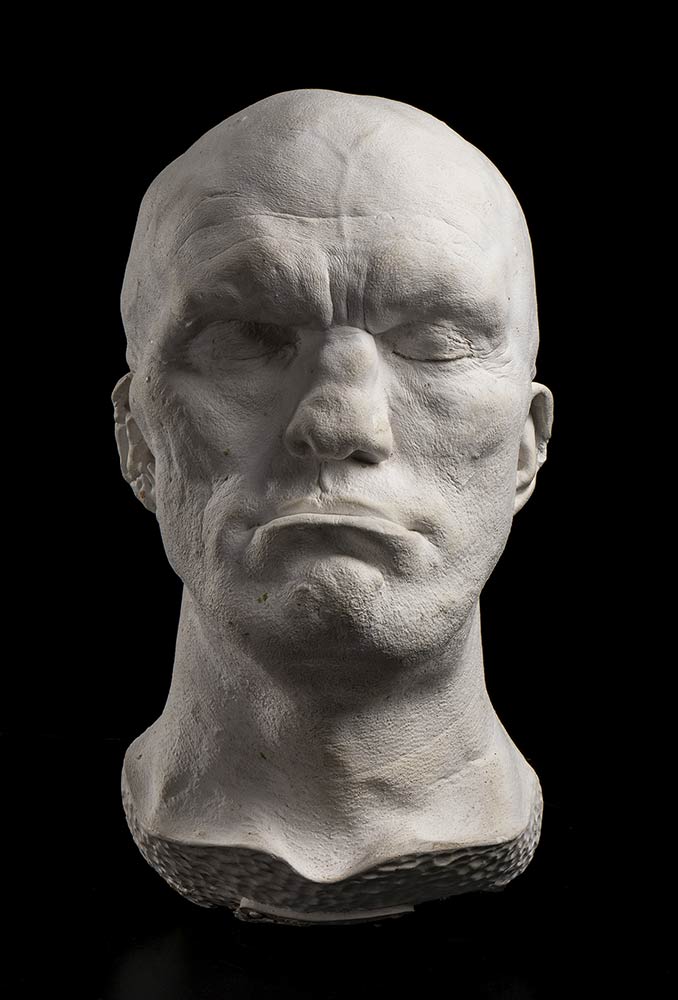 Maschera mortuaria in gesso. Calco di persona defunta.Firma o nome del soggetto sul retro che risulta indecifrabile impedendoci di risalire all'origine.