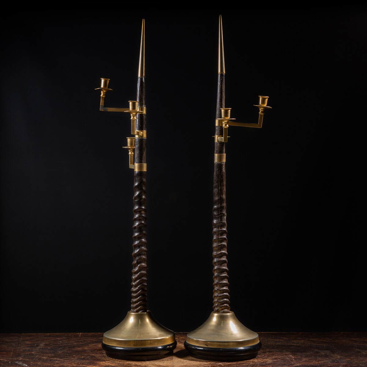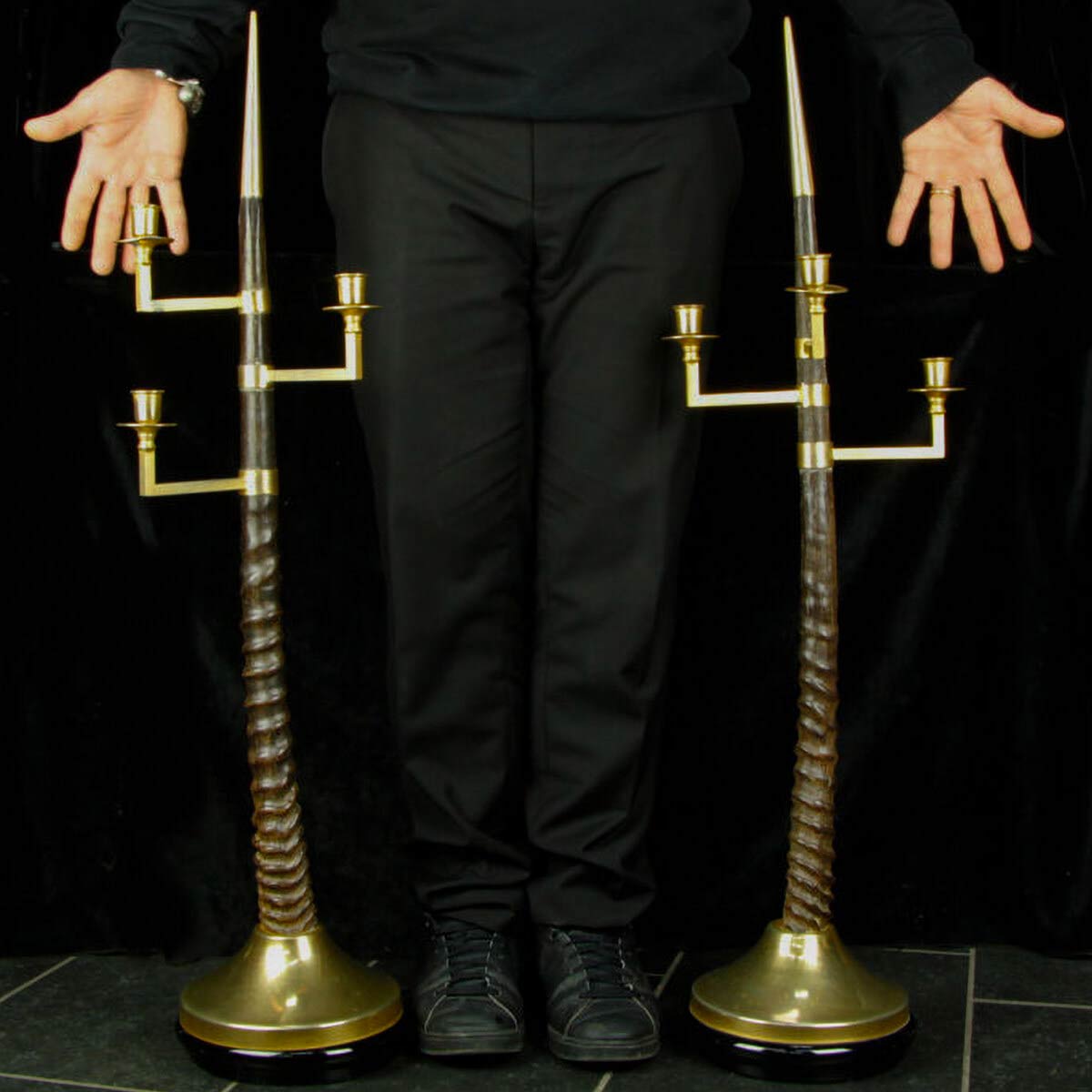 Una stupenda coppia di Corna è stata utilizzata in una lavorazione risalente agli anni 1940 per creare due bellissimi candelabri. Dimensione candelabro singolo: 95 x 24 x 22 mm
