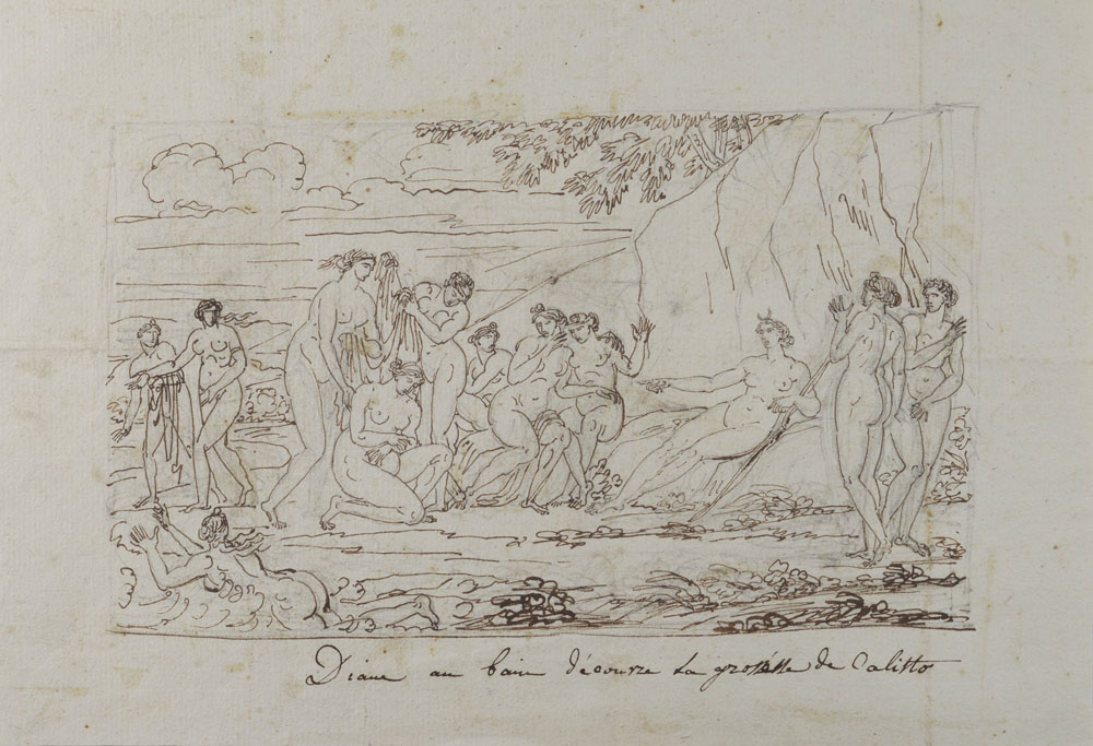 Lot 266 | Scuola francese del XIX secolo Diana al bagno Penna e inchiostro bruno su...