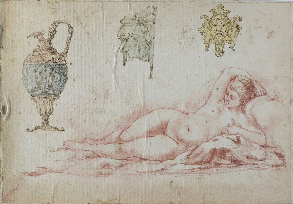 Scuola francese del XVIII secolo Studio di nudo e brocca