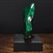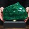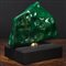 Malachite di prima scelta, lucidata da un lato e montata su base di design in legno con supporto in ottone satinato. Altezza con base: 240 mm