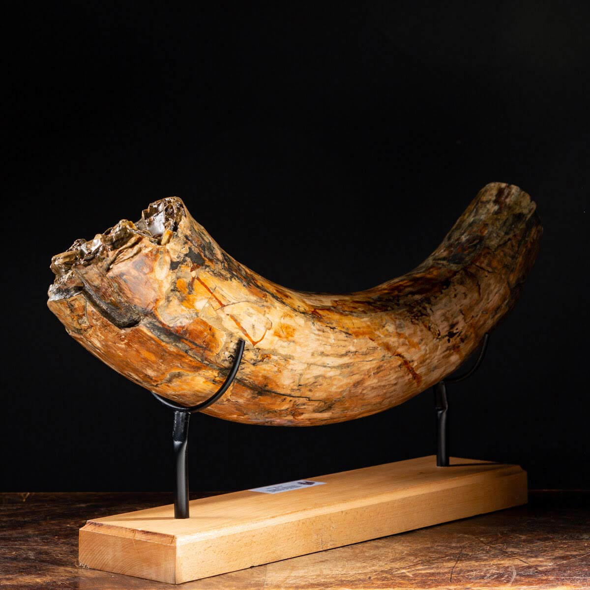 Zanna di mammut, che si può ergere forse a simbolo dell'intera specie che ha imperversato sul nostro pianeta per quasi 5 milioni di anni, per poi scomparire di recente, solo 3500 anni fa. Dimensione zanna: 800 x 160 x 150 mm