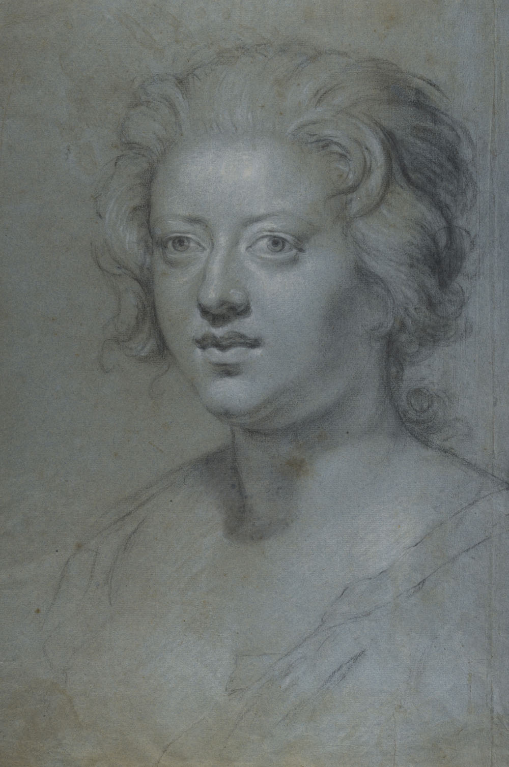 Scuola italiana del XVIII secolo Volto di donna Gessetto nero e bianco su...