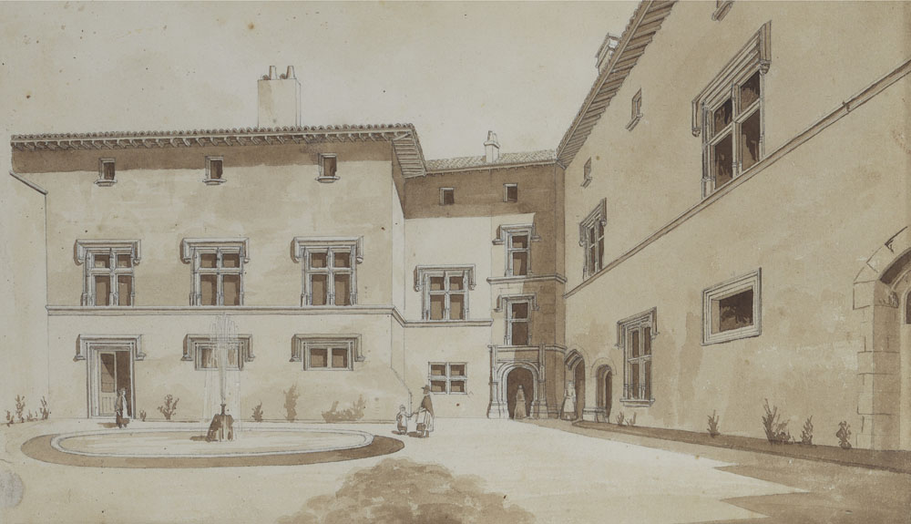 Scuola francese del XIX secolo Interno di un cortile con figure Inchiostro...