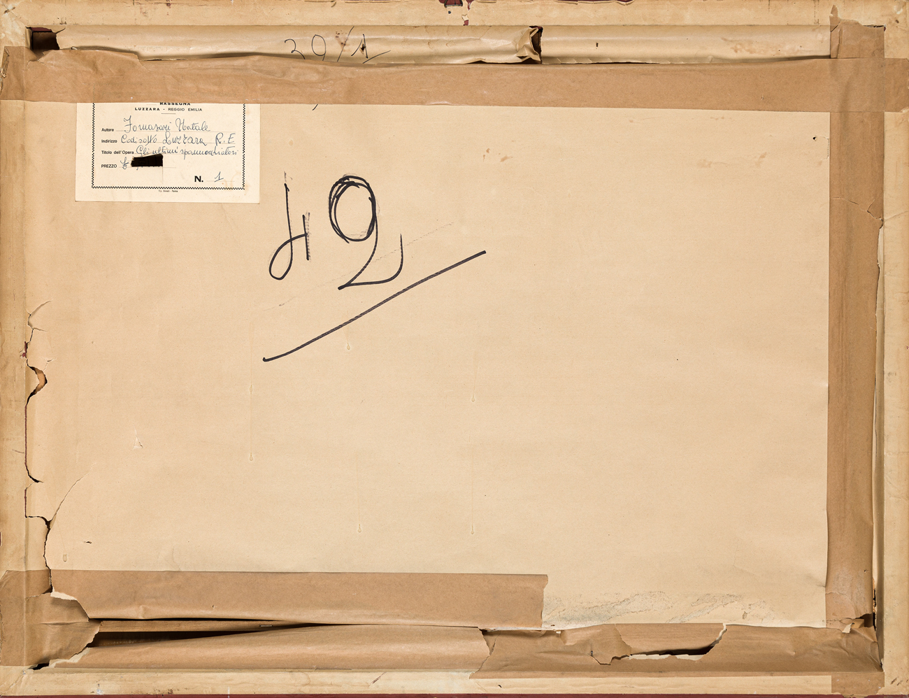 Etichetta della Rassegna d'Arte Luzzara al retro del cartone protettivo
