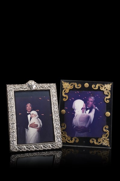 Lotto composto da due fotografie di Valentina Cortese con Gregory Peck. Una in cornice in argento