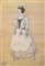 Ignoto. Bozzetto per la trilogia "le avventure della villeggiatura" di Carlo Goldoni. Tecnica mista su cartoncino. Siglato e datato 1954 in basso a sinistra. Iscritto al retro "13. Villeggiatura. Brigida. La I scena senza cuffia e senza grembiule" (cm 32x46,5)