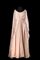 Abito da sera rosa pallido con maniche a pipistrello in chiffon decorato da paillettes color argento unito a un boa in piume en suite.