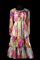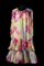 Abito in chiffon di seta a fiori verdi e rosa con grandi balze e sottovestito i