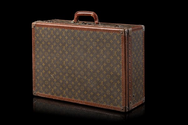 A Monogram canvas suitcase with calfhide borders, brass details. Authentication code n° 879880 (cm 60x42x22) (defects, wear)